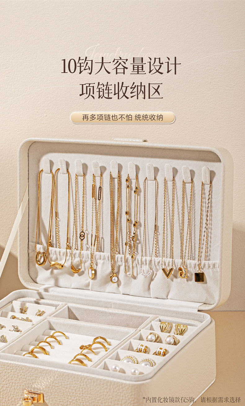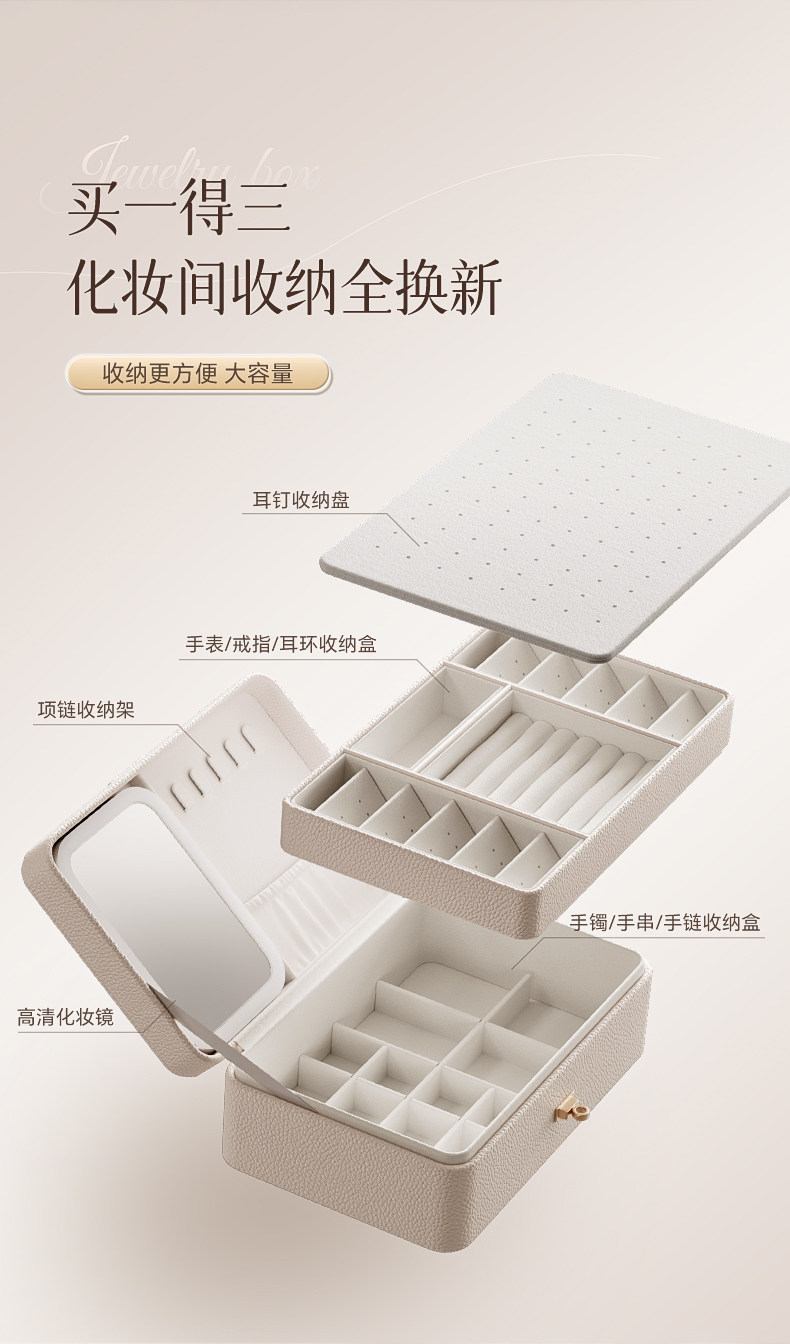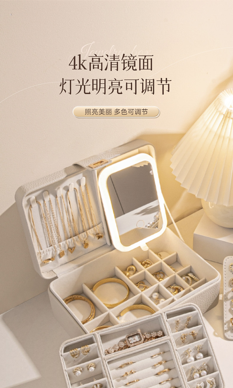 | Color Classification | Cream White [Three-Layer Jewelry Box] Upgraded Earring Plate/Anti-Oxidation/Velvet Lining,Fairy Pink [Three-Layer Jewelry Box] Upgraded Earring Tray/Anti-Oxidation/Velvet Lining,Cream White [Double-Layer Jewelry Box] Anti-Oxidation/Large Capacity/Velvet Lining,Fairy Pink [Double-Layer Jewelry Box] Anti-Oxidation/Large Capacity/Velvet Lining,Milky White Exquisite [Double-Layer Jewelry Box - Built-In Vanity Mirror] Upgraded Vanity Mirror / Tri-Color Lighting / Stepless Dimming,Fairy Dust Exquisite [Double-Layer Jewelry Box - Built-In Vanity Mirror] Upgraded Vanity Mirror / Tri-Color Lighting / Stepless Dimming,Milky White Exquisite [Three-Layer Jewelry Box - Built-In Vanity Mirror] Upgraded Vanity Mirror/Three-Color Lighting/Stepless Dimming,Fairy Dust Exquisite [Three-Tier Jewelry Box - Built-In Vanity Mirror] Upgraded Vanity Mirror / Tri-Color Lighting / Stepless Dimming |