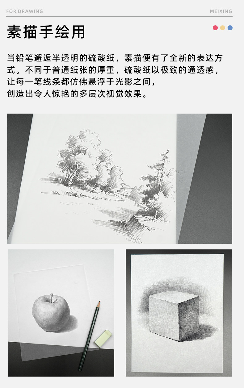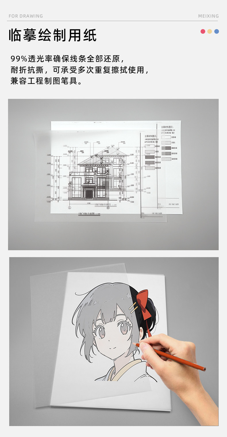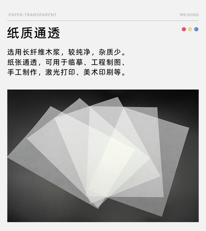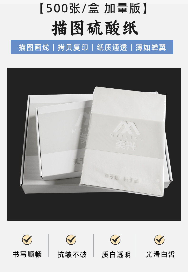 Meixing Tracing Paper 500 Sheets/Box A4 Drawing Material for Printing, Copying, Rubber Stamps, Rubbing, Journaling, Baking Paper, Tracing Calligraphy, Transfer Printing, Transparent Architectural Design Sketching, Drawing, Art Academy Special Use