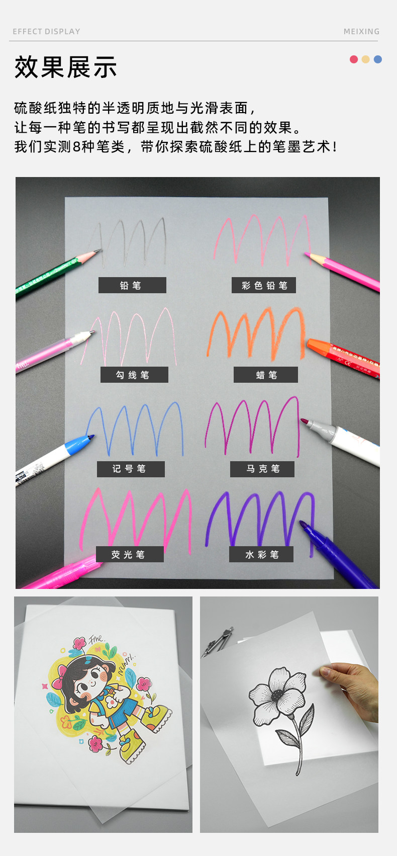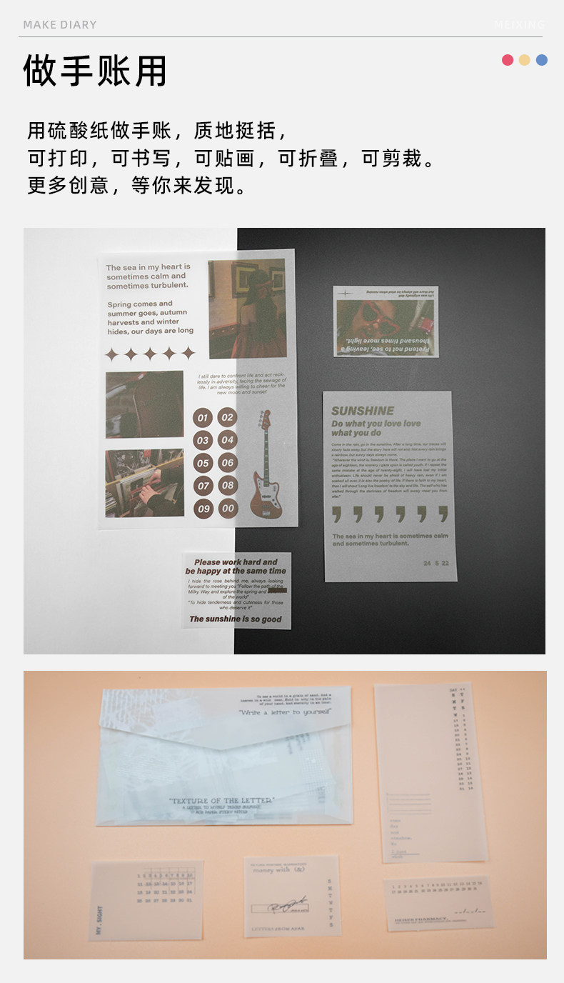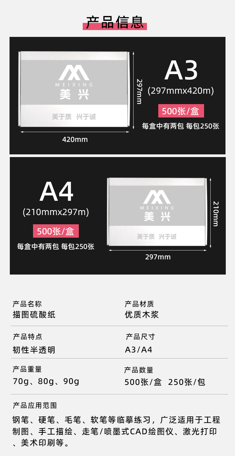 Meixing Tracing Paper 500 Sheets/Box A4 Drawing Material for Printing, Copying, Rubber Stamps, Rubbing, Journaling, Baking Paper, Tracing Calligraphy, Transfer Printing, Transparent Architectural Design Sketching, Drawing, Art Academy Special Use