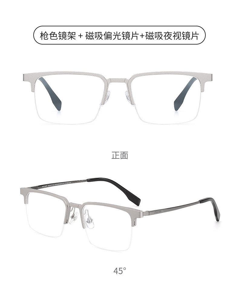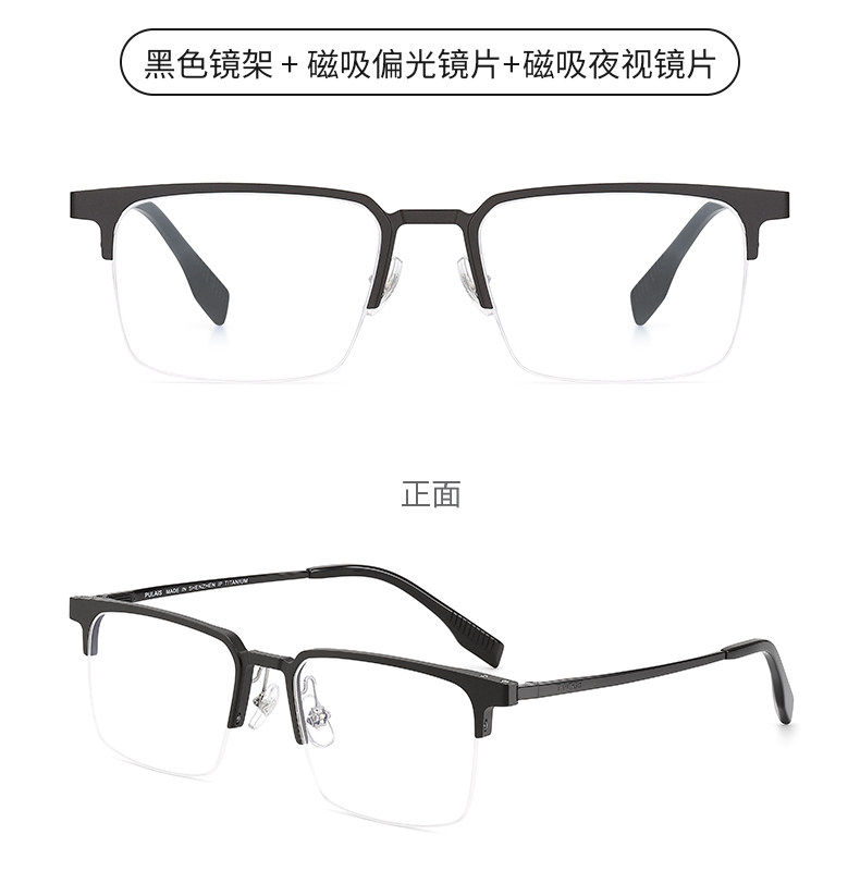 Price Magnetic Half-Frame Myopia Glasses for Men, Three-In-One Sunglasses, Polarized Sun Clip-On Eyeglass Frames for Driving