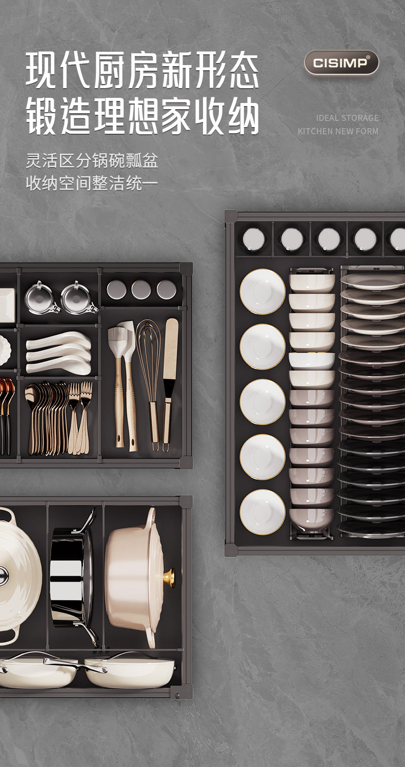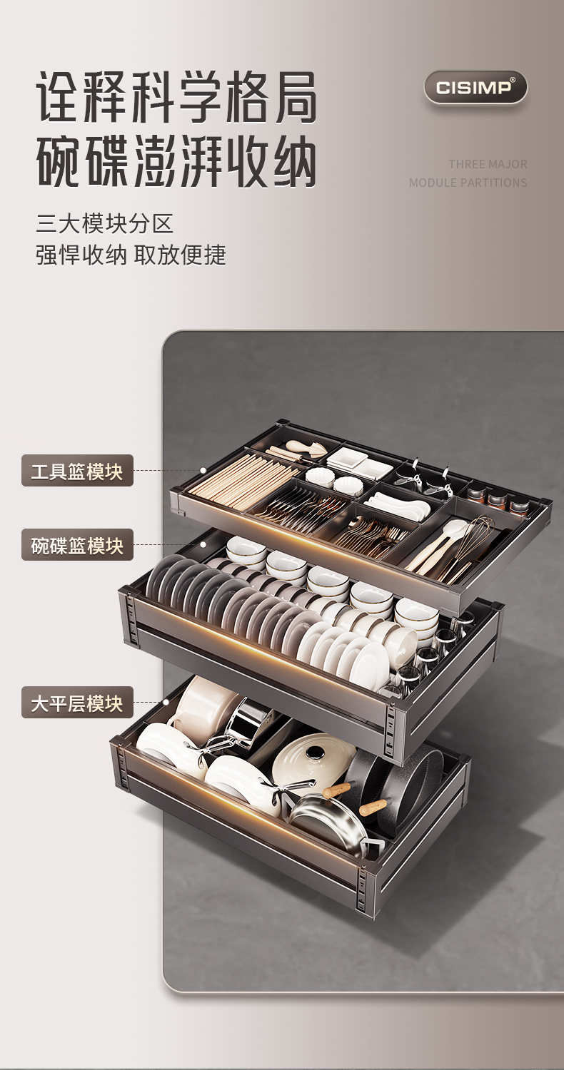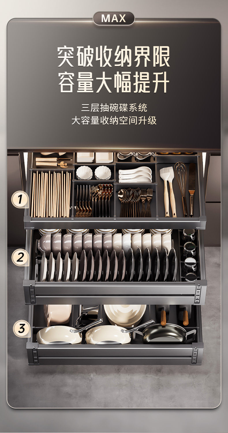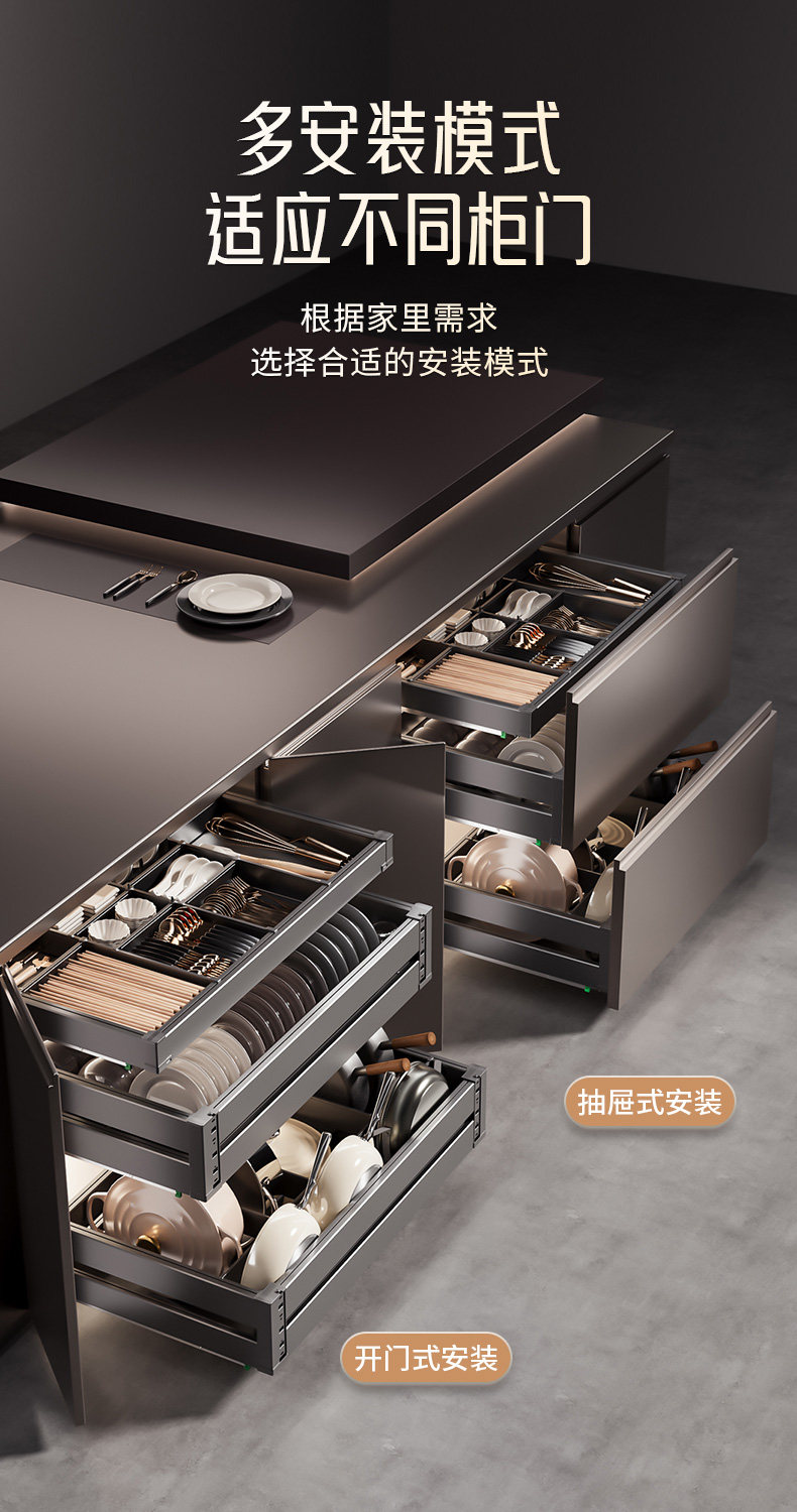 Simple Independent Three-Layer Pull-Out Basket Kitchen Cabinet Bowl Basket Drawer-Type Cupboard Space Aluminum Alloy Pull-Out Dish Rack