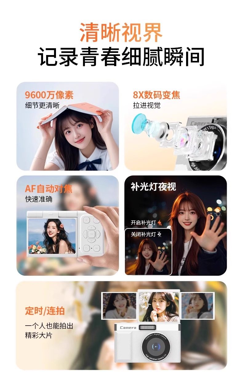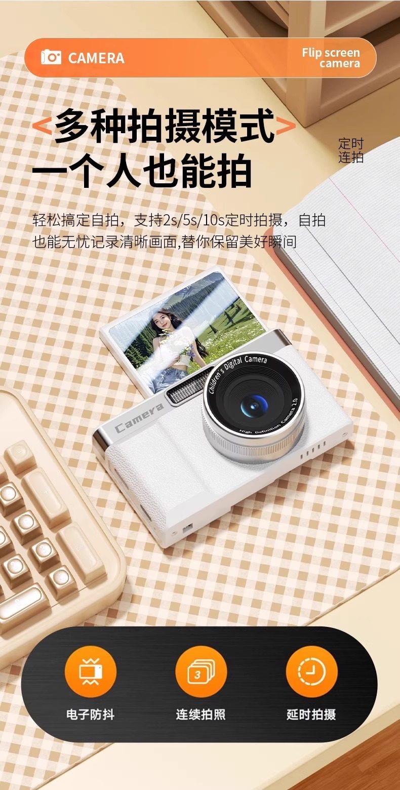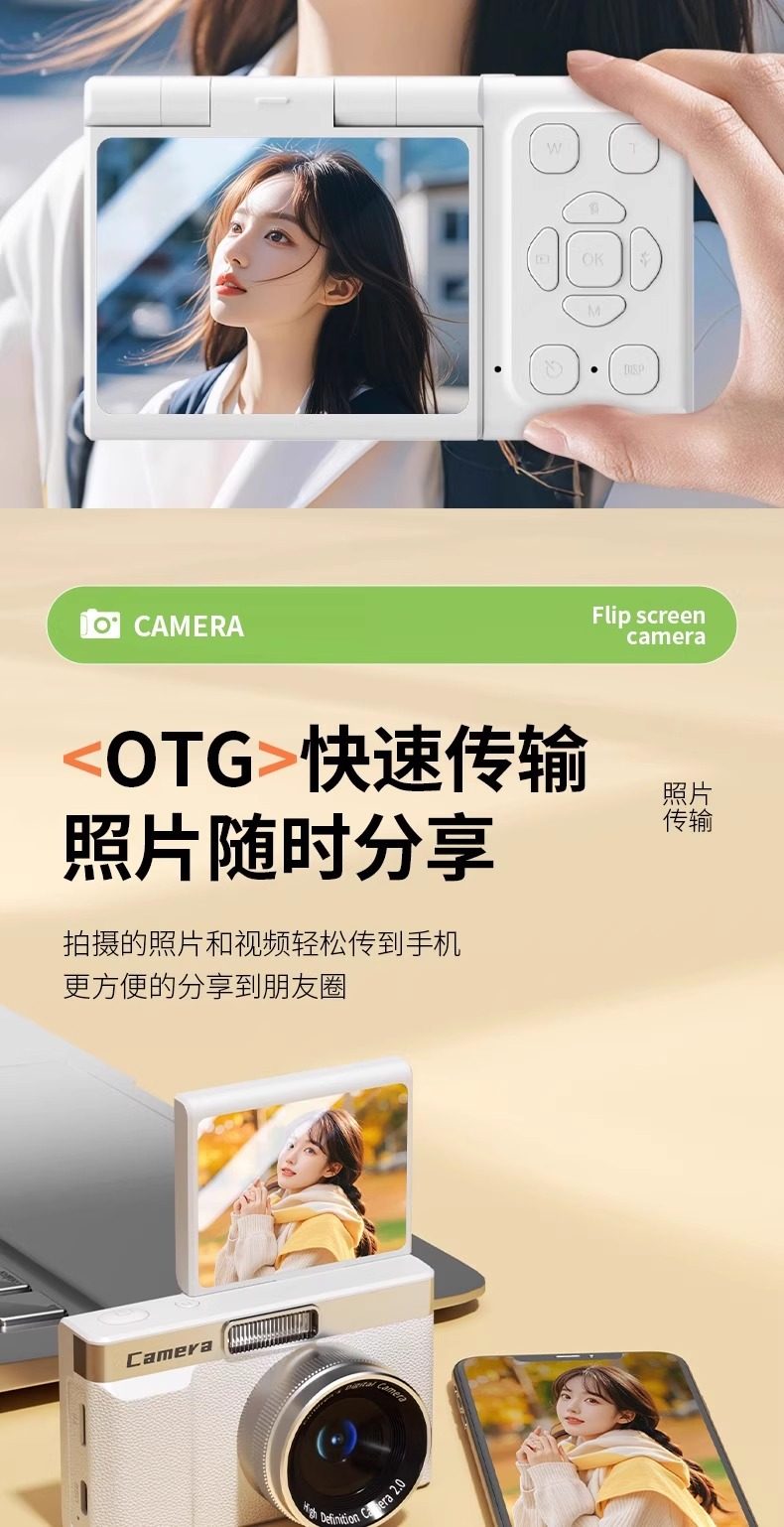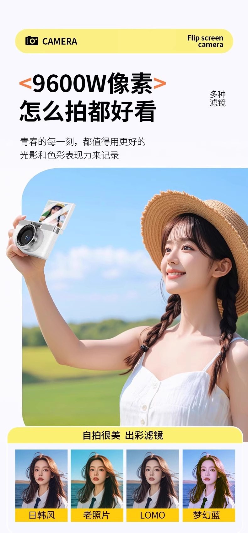 High-Definition Pixel Ccd Digital Camera with Flip-Up Selfie Function, 9600W, Portable Card Camera for Students, Campus Travel