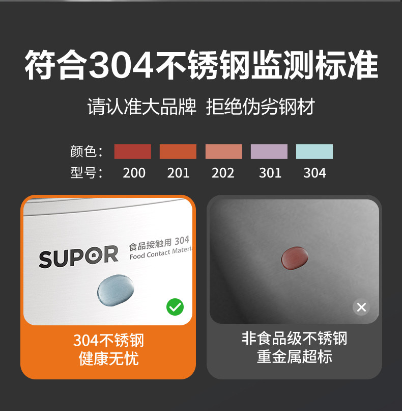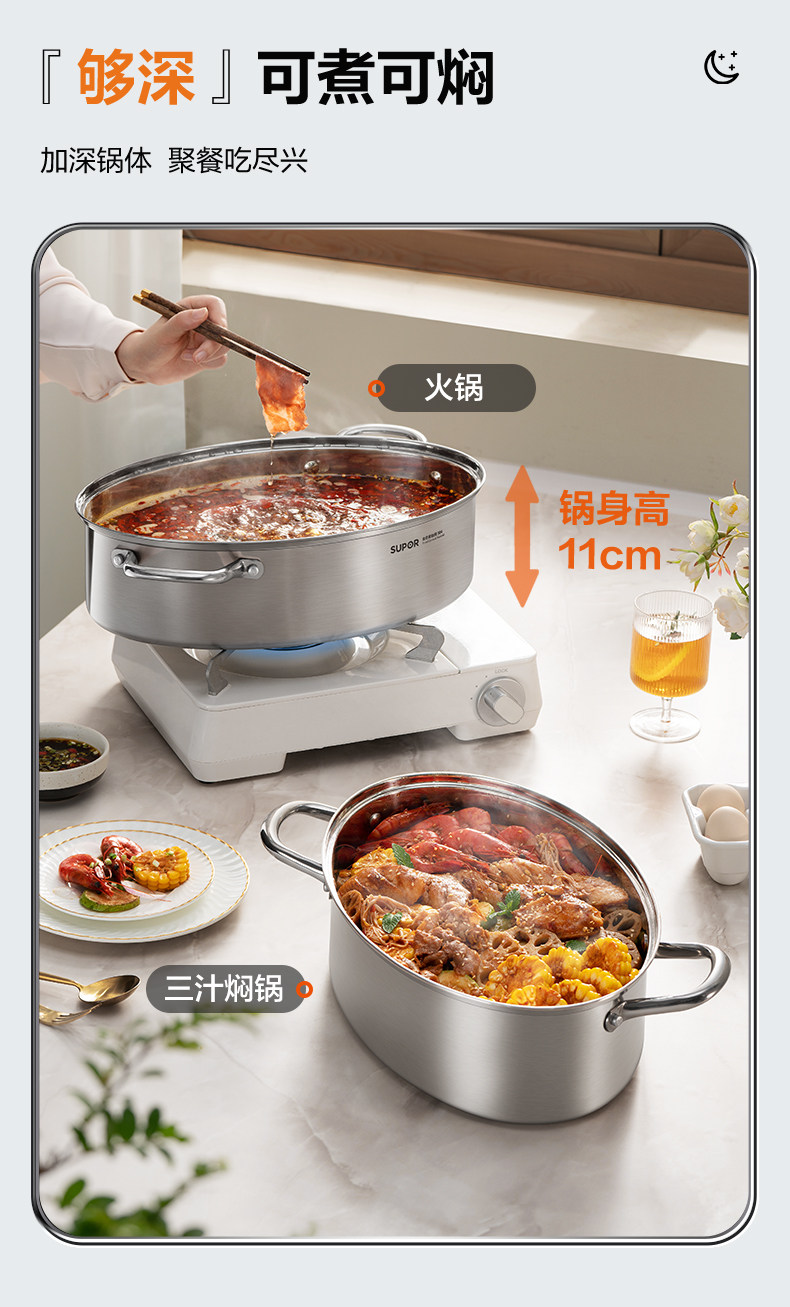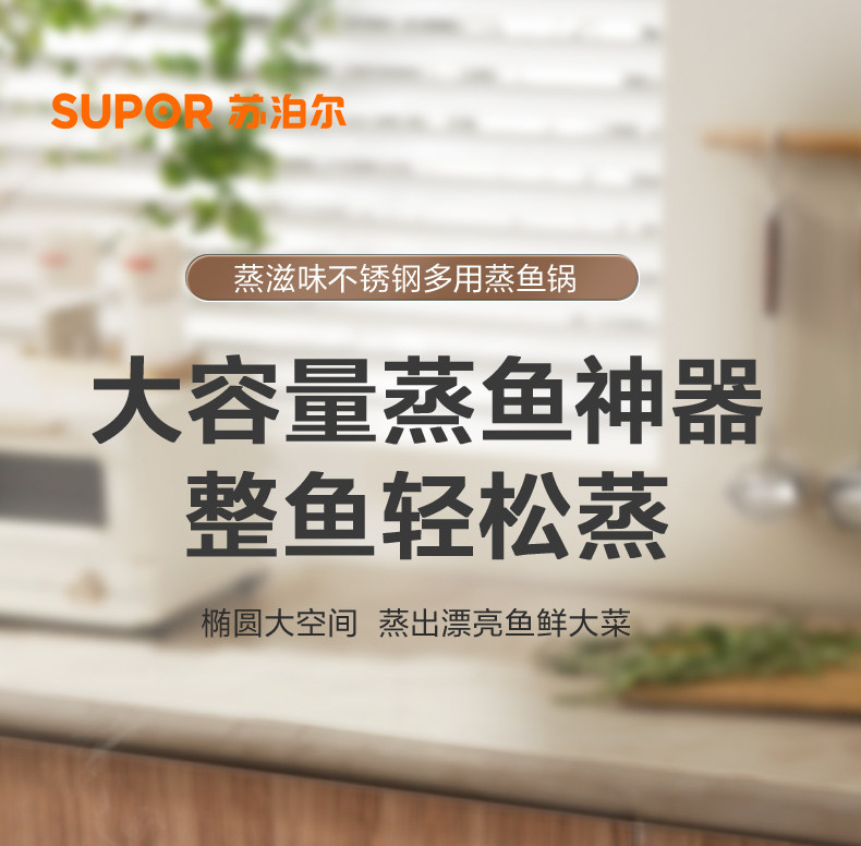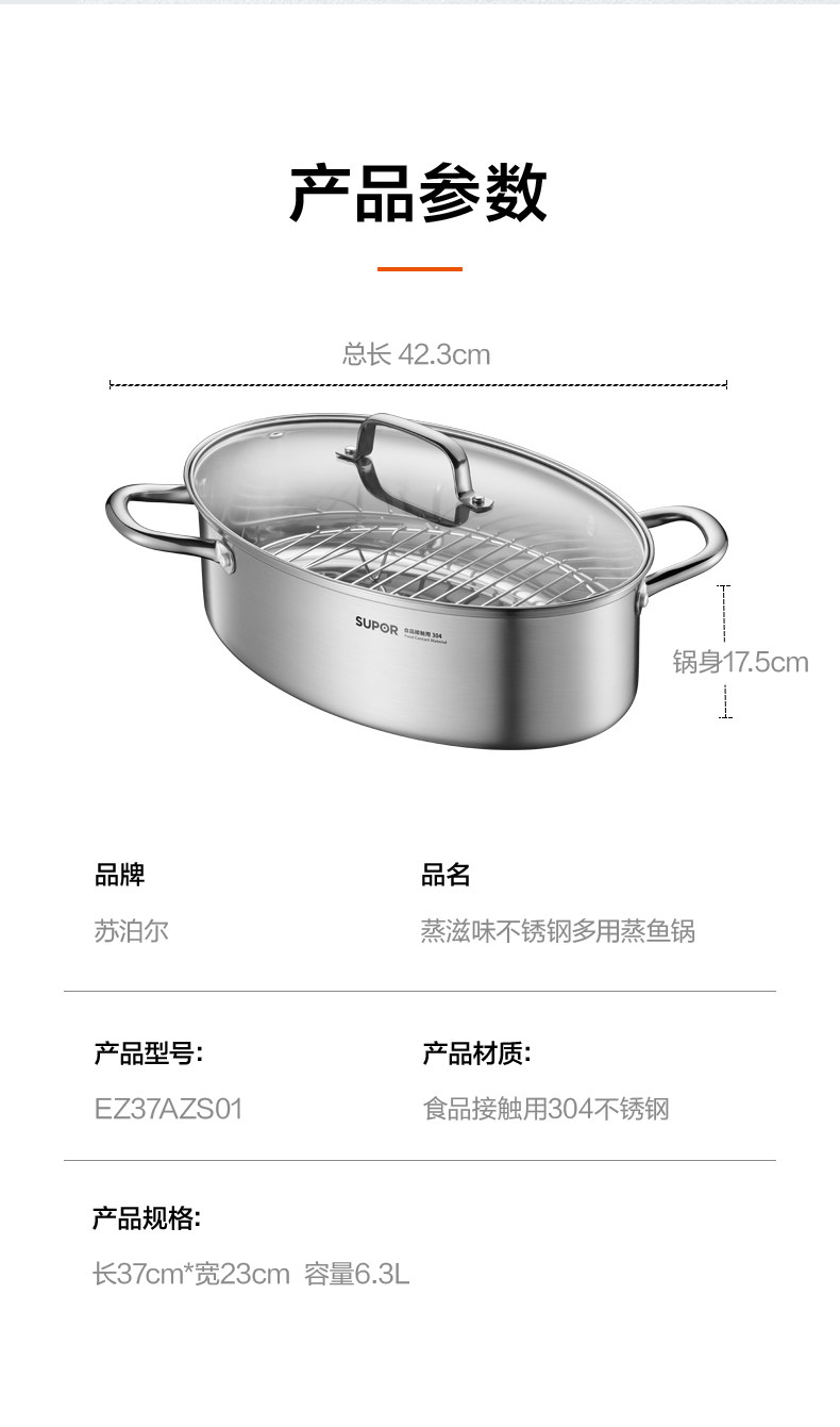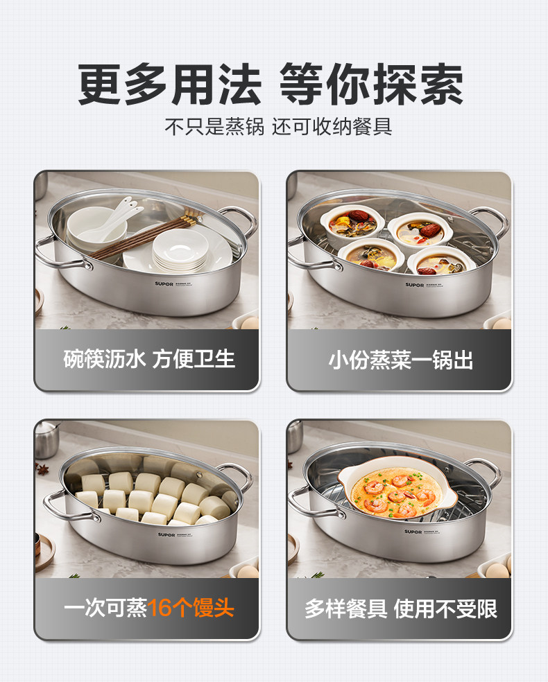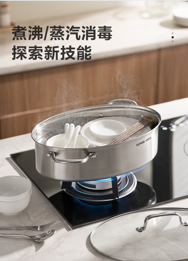 Supor Steamer for Home Use, Fish Steamer Made of 304 Stainless Steel, Special Steamer for Steaming Fish, Long Oval-Shaped Fish Steaming Tool