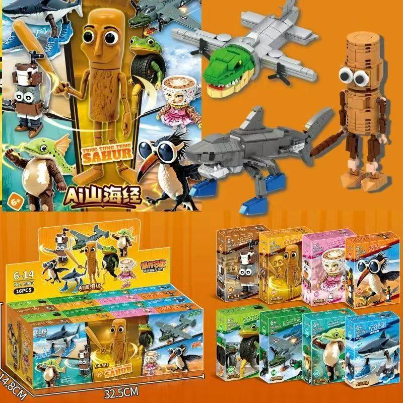 Foreign Ai Shanhaijing Building Blocks Wooden Stick Figures Tungtungsahur Running Shoes Shark Assembly Toys Abstract Toys