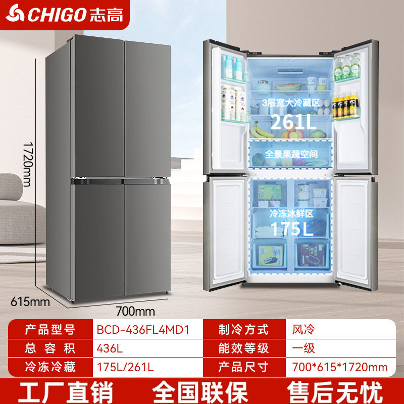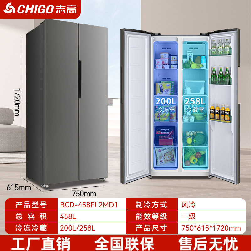 Chigo Side-By-Side Refrigerator 406L Double-Door Large Capacity Air-Cooled Official Household Genuine First-Class Energy Efficiency Refrigerator