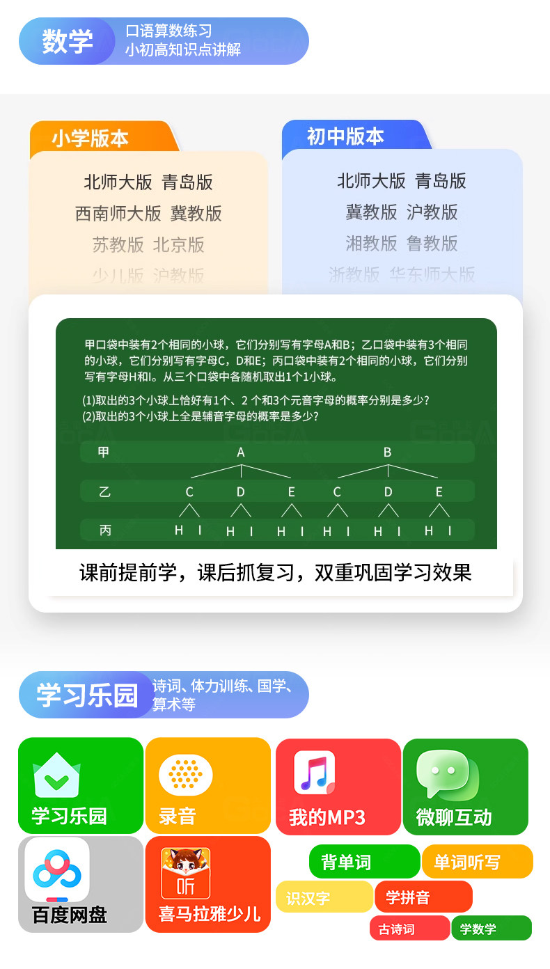 | Point Reading Content Type | High School and College Entrance Exam (Core Vocabulary/Phrases/Listening Comprehension),Xinhua Dictionary,Course Synchronization |