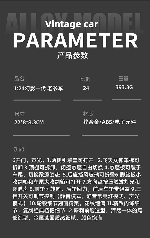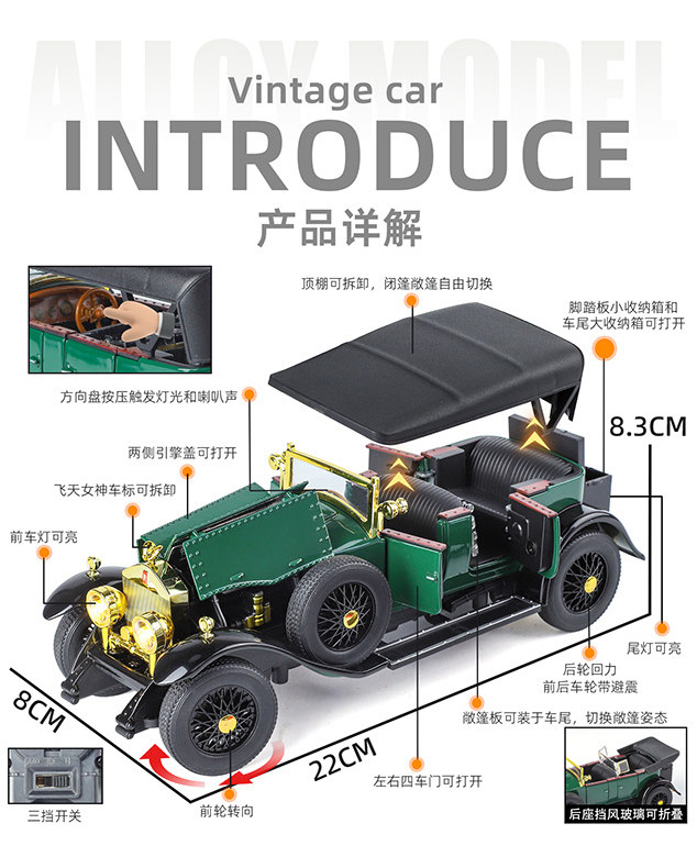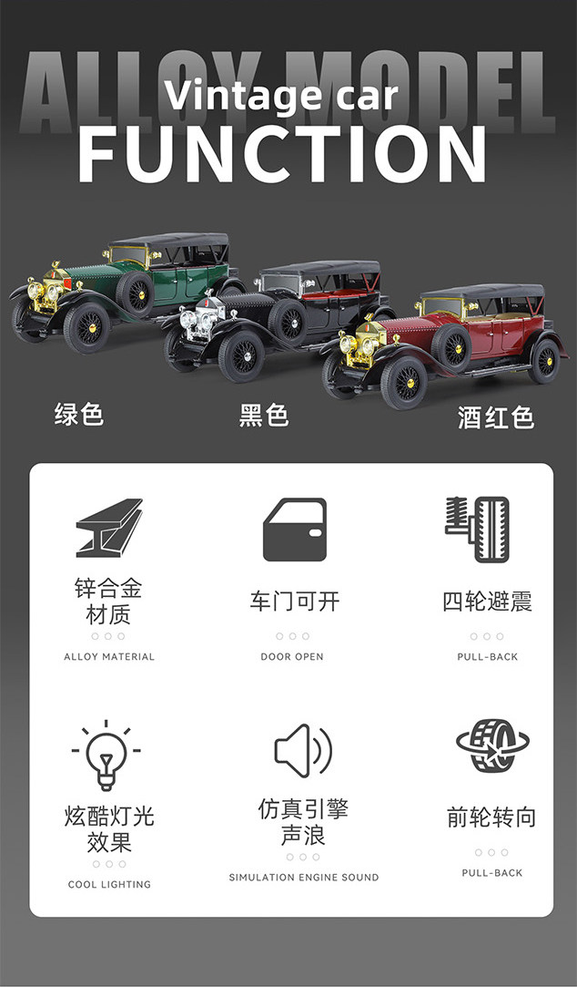 1:24 Rolls-Royce Generation Retro Classic Car Alloy Model Ornaments Convertible Boy Toy Car Gift