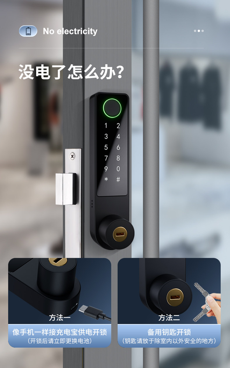 No-Drill Kfc Door Fingerprint Lock, Bridge-Breaking Aluminum Alloy Profile Smart Lock, Framed Glass Door Password Electronic Lock