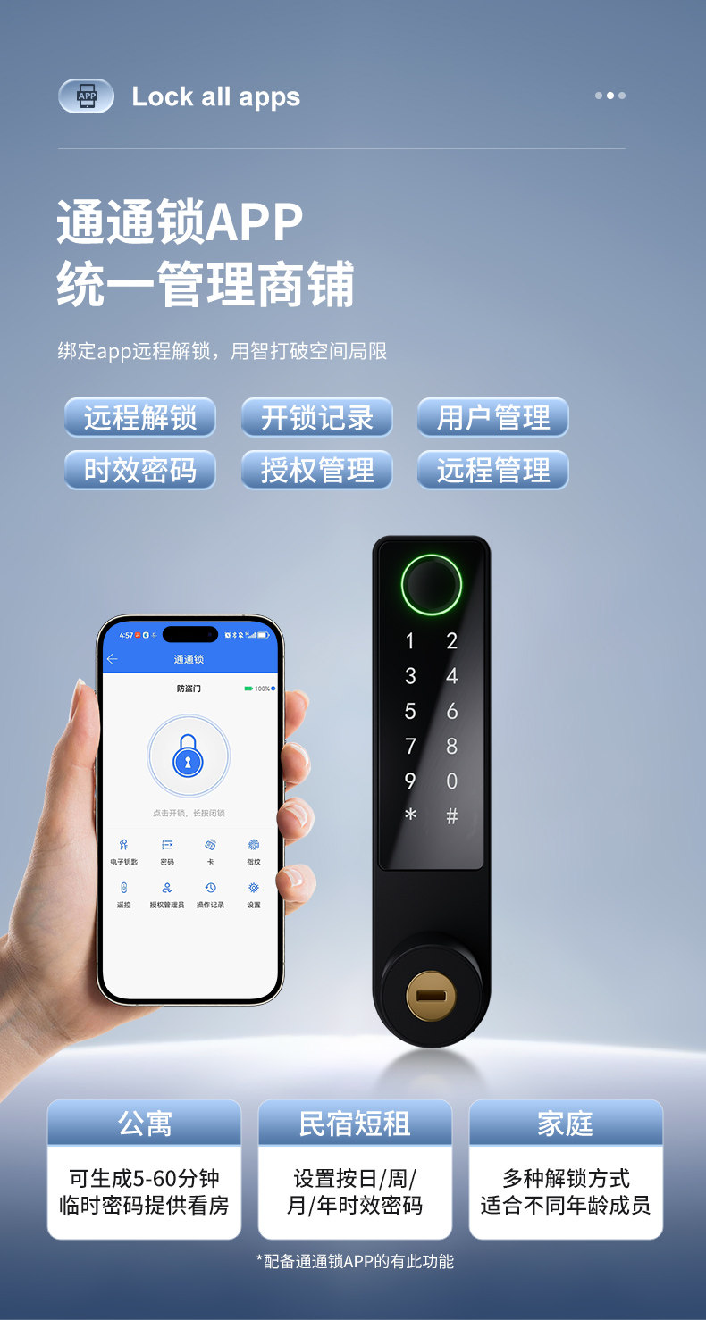 | Electronic Type | Ic Card Lock,Fingerprint Lock,Password Lock,Key Unlock |