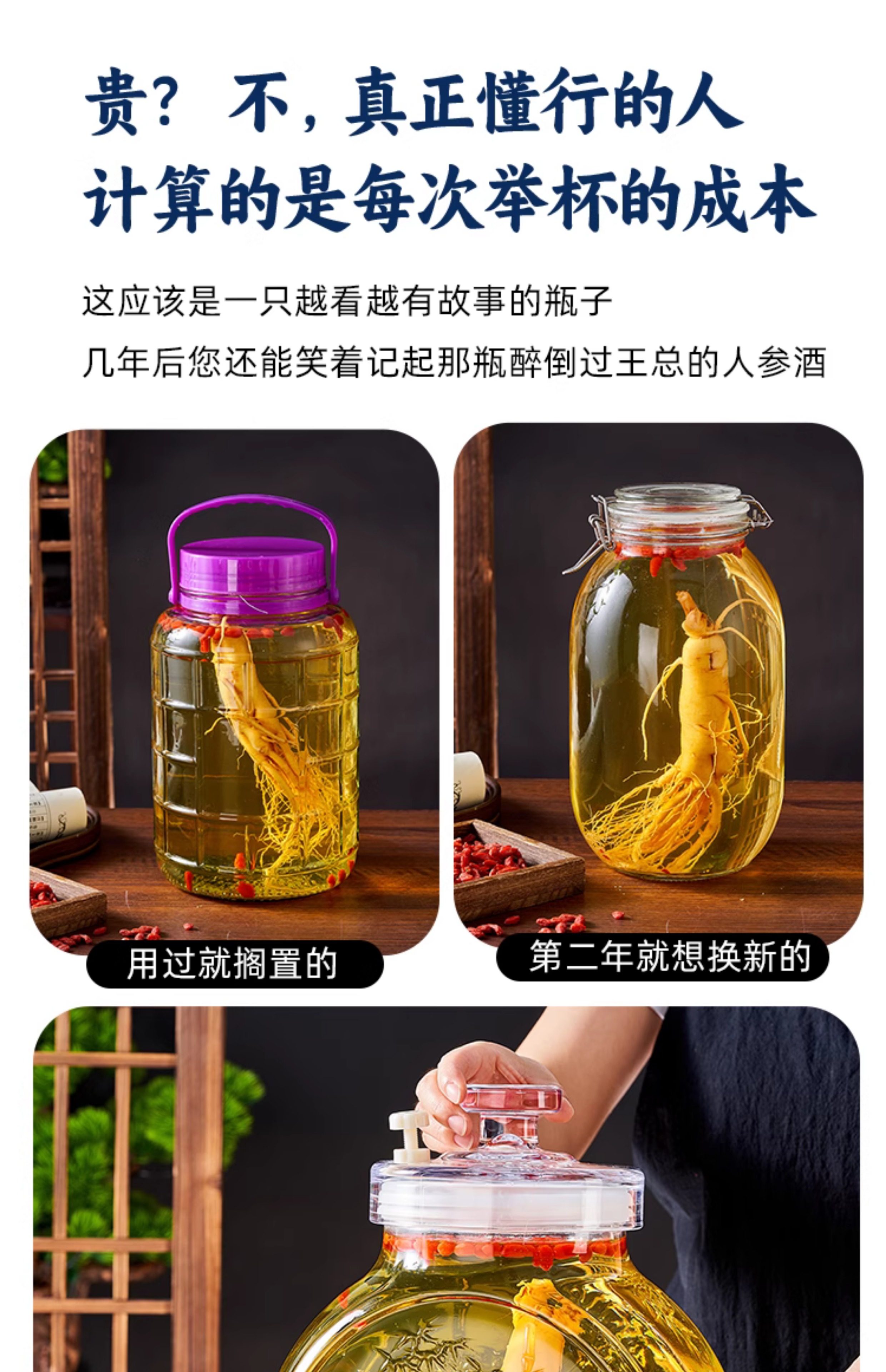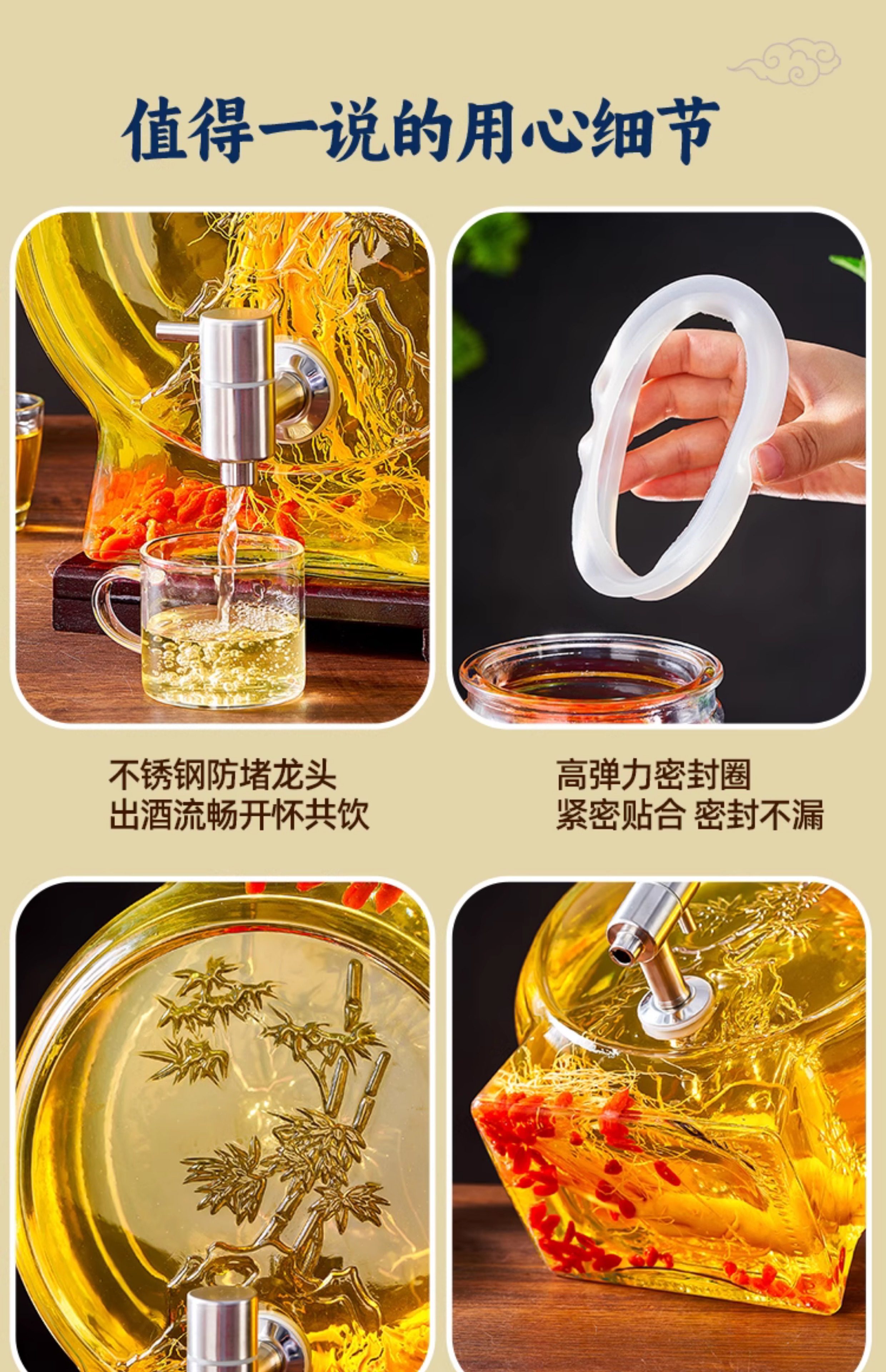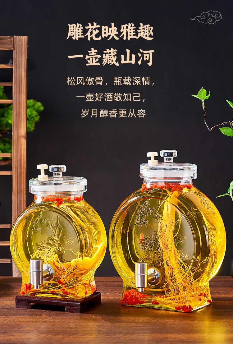 High-End Glass Bottles for Soaking Liquor, Food-Grade Wine Jars with Taps, Sealed Special Wine Bottles, Medicinal Wine Containers