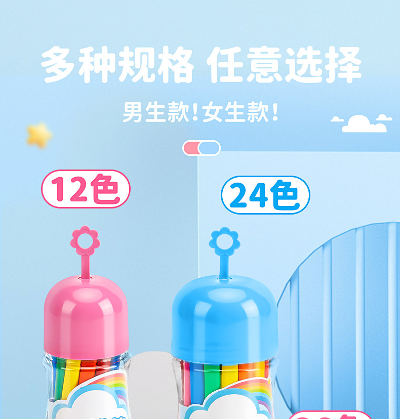 | Color Classification | [24 Colors] Large Capacity Silky Colorful Stick,[12 Colors] Large Capacity Rotating Crayons,【Glacier Pink】12 Colors⭐Don'T Dirty Your Hands,[Mousse Blue] 12 Colors⭐Washable,【Glacier Pink】24 Colors⭐Don'T Dirty Your Hands,[Mousse Blue] 24 Colors⭐Washable,【Glacier Pink】36 Colors⭐Don'T Dirty Your Hands,[Mousse Blue] 36 Colors⭐Washable,【Glacier Pink】48 Colors⭐Don'T Dirty Your Hands,[Mousse Blue] 48 Colors⭐Washable,[Glacier Pink 5-Piece Set-12 Colors] Coloring Book*2+Outlining Pen*2,[Mousse Blue 5-Piece Set-12 Colors] Coloring Book*2+Outlining Pen*2,【Glacier Pink 5-Piece Set - 24 Colors】Coloring Book * 2 + Fineliner Pens * 2,[Mousse Blue 5-Piece Set-24 Colors] Coloring Book*2+Outlining Pen*2,[Glacier Pink 5-Piece Set-36 Colors] Coloring Book*2+Outlining Pen*2,[Mousse Blue 5-Piece Set-36 Colors] Coloring Book*2+Outlining Pen*2,【Glacier Pink 5-Piece Set - 48 Colors】Coloring Book * 2 + Fineliner Pens * 2,[Mousse Blue 5-Piece Set-48 Colors] Coloring Book*2+Outline Pen*2,[Glacier Pink 10-Piece Set-12 Colors] A5 Picture Book*5+Coloring Book*2+Outlining Pen*2,[Mousse Blue 10-Piece Set-12 Colors] A5 Picture Book*5+Coloring Book*2+Outlining Pen*2,[Glacier Pink 10-Piece Set-24 Colors] A5 Picture Book*5+Coloring Book*2+Outlining Pen*2,[Mousse Blue 10-Piece Set-24 Colors] A5 Picture Book*5+Coloring Book*2+Outlining Pen*2,[Glacier Pink 10-Piece Set-36 Colors] A5 Picture Book*5+Coloring Book*2+Outlining Pen*2,[Mousse Blue 10-Piece Set-36 Colors] A5 Picture Book*5+Coloring Book*2+Outlining Pen*2,[Glacier Pink 10-Piece Set-48 Colors] A5 Picture Book*5+Coloring Book*2+Outlining Pen*2,[Mousse Blue 10-Piece Set-48 Colors] A5 Picture Book*5+Coloring Book*2+Outlining Pen*2 |
