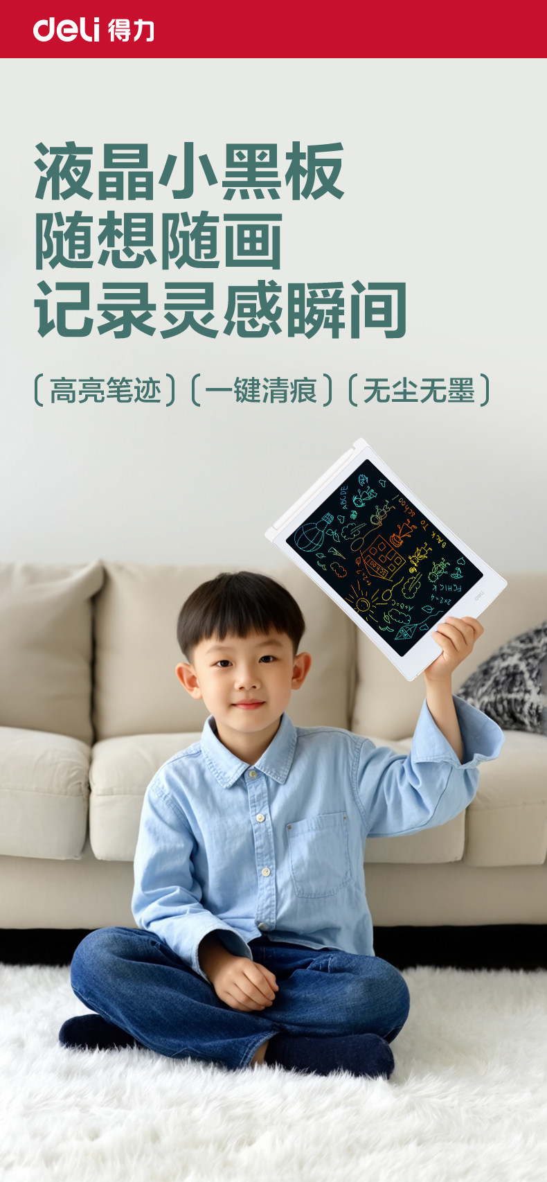 Deli Lcd Writing Board for Kids, Children's Gift, Home-Use Small Blackboard, Erasable Drawing Board