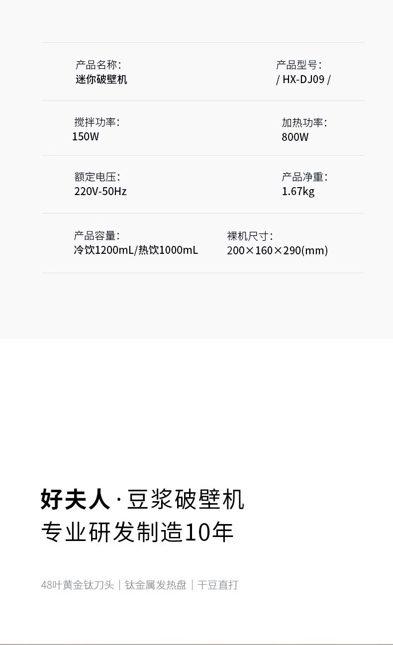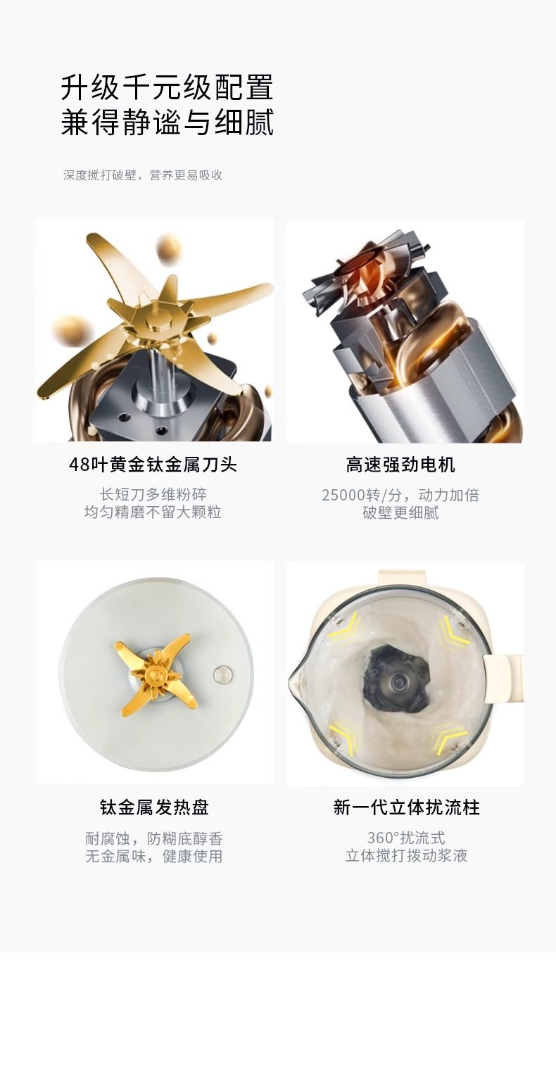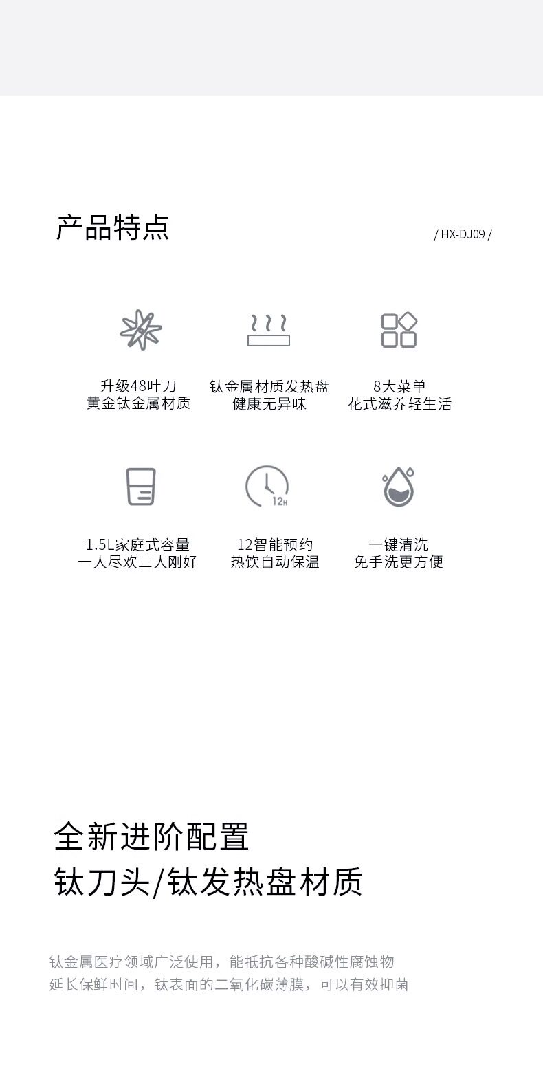 | Basic Functions | Juice,Soy Milk,Crushed Ice,Rice Cereal,Milkshake,Supplementary Food,Self-Cleaning,Thick Soup,Appointment,Polishing,Slow Cooking,Corn Juice |