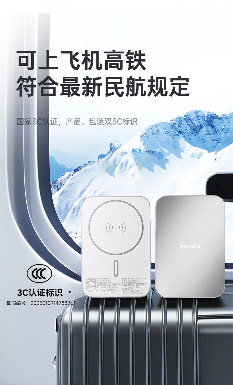 [Power Bank with 3C Certification, Suitable for Airplanes] Philips Card-Type Magnetic 2025 New Model, Ultra-Thin, Compact, Portable, Mini Wireless Style, Suitable for Apple Fast Charging, Dedicated Mobile Power Bank 17