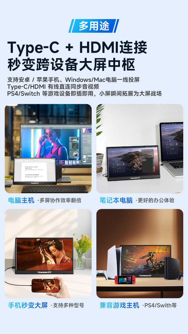 [Big Brand] Newman 4K Portable 15.6inch Monitor Ips144Hz Laptop Expansion Screen Ps4/Swit