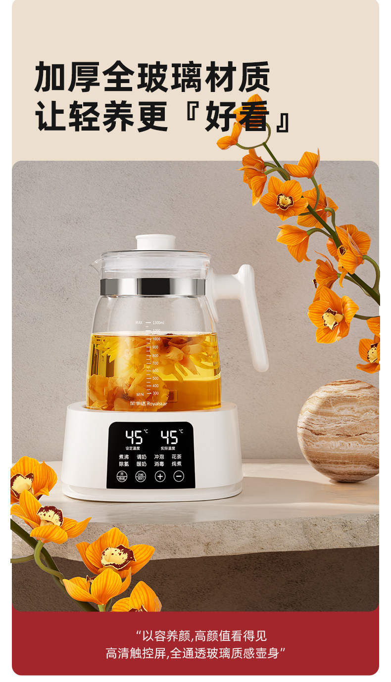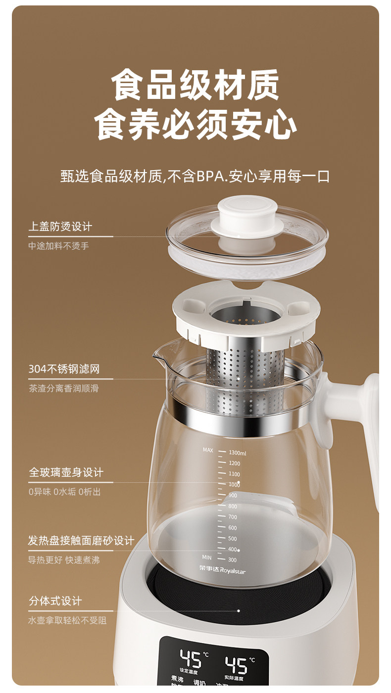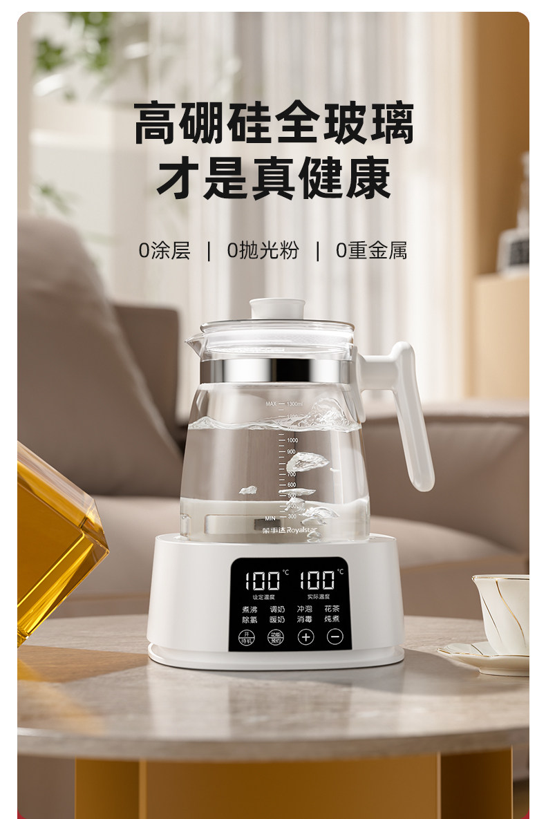 Royalstar Tea Kettle 2025 New Model Small Office Hot Water Kettle Household All-Glass Health Kettle for Boiling and Simmering