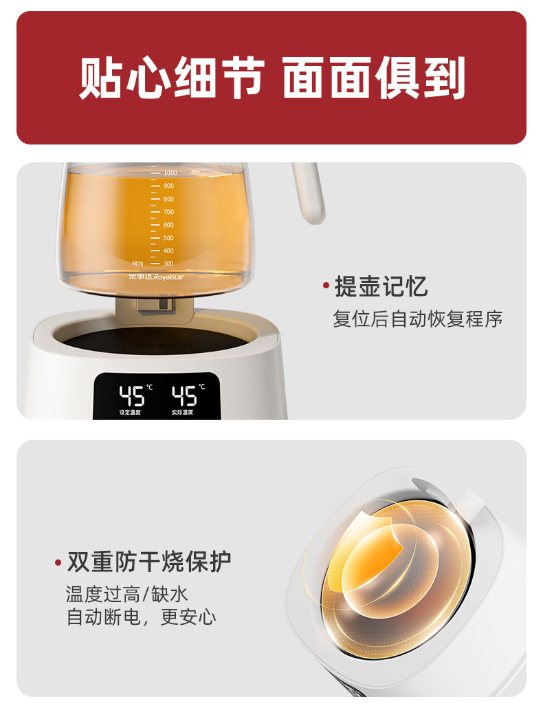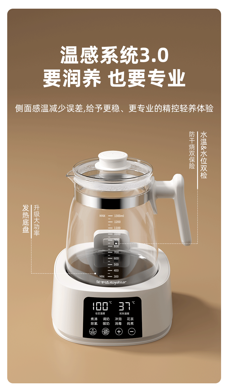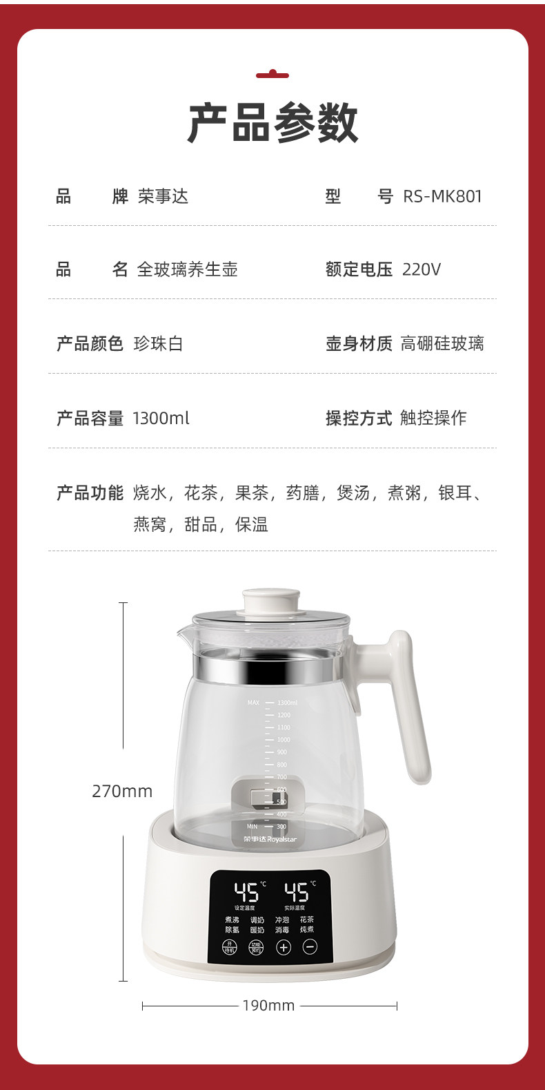 Royalstar Tea Kettle 2025 New Model Small Office Hot Water Kettle Household All-Glass Health Kettle for Boiling and Simmering
