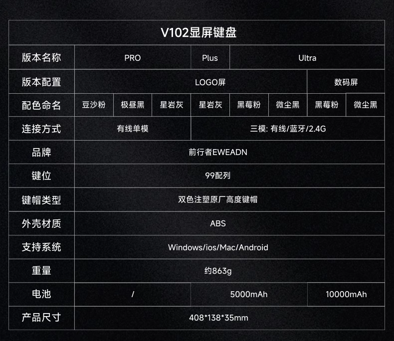 | Color Classification | 【New Arrival Special】Add to Cart & Favorite for Exquisite Gifts!,Order Today and Get a Free Cleaning Brush~,Blackberry Ultra Wired Edition [Side-Engraved Translucent - Rainbow Lighting Effect],Microdust Ultra Wired Edition [Side Engraved Translucent - Rainbow Light Effect],Da Carbon Ultra Wired Version [Silent Button--Rainbow Light Effect],Black Ultra Wired Version [Silent Button--Rgb Lighting Effect],Blackberry Ultra Wired Keyboard and Mouse Set [Side Engraved Light Transmission - Rainbow Light Effect],Dust Ultra Wired Keyboard and Mouse Set [Side Engraving and Translucent - Rainbow Light Effect],Black Ultra Wired Keyboard and Mouse Set [Silent Buttons - Rgb Lighting Effects],Blackberry Ultra Three Templates [2000Mah Battery - Low Power Display],Micro Dust Ultra Three Templates [2000Mah Battery--Low Power Display],Blackberry Ultra Three Templates [5000Mah Battery--Low Power Display],Micro Dust Ultra Three Templates [5000Mah Battery--Low Power Display],Big Carbon Ultra Three Templates [5000Mah Battery--Low Power Display],Blackberry Ultra Three-Mode Keyboard [2000Mah Battery-Low Power Display] + Wireless Bluetooth Mouse,Microdust Ultra Three-Mode Keyboard [2000Mah Battery-Low Power Display] + Wireless Bluetooth Mouse,Blackberry Ultra Three-Mode Keyboard [5000Mah Battery-Low Power Display] + Wireless Bluetooth Mouse,Microdust Ultra Three-Mode Keyboard [5000Mah Battery-Low Power Display] + Wireless Bluetooth Mouse,Blackberry Ultra Tri-Mode Kit [5000Mah Battery - Low Power Display] + X23Se Tri-Mode Mouse,Microdust Ultra Three-Mode Set [5000Mah Battery-Low Power Display] + X23Se Three-Mode Mouse,--The Following Is the 10000 Mah Battery--Smart Screen Display Version,Blackberry Ultra Three-Mode Screen Display [10000Mah Battery-Low Power Display],Micropowder Ultra Three-Mode Screen Display [10000Mah Battery-Low Power Display],Blackberry Ultra Three-Mode Screen Display Keyboard [10000Mah Battery-Low Power Display] + Wireless Bluetooth Mouse,Microdust Ultra Three-Mode Screen Display Keyboard [10000Mah Battery-Low Power Display] + Wireless Bluetooth Mouse,Blackberry Ultra Three-Mode Screen Display Set [10000Mah Battery-Low Power Display] + X23Se Three-Mode Mouse,Microdust Ultra Three-Mode Screen Display Set [10000Mah Battery-Low Power Display] + X23Se Three-Mode Mouse |