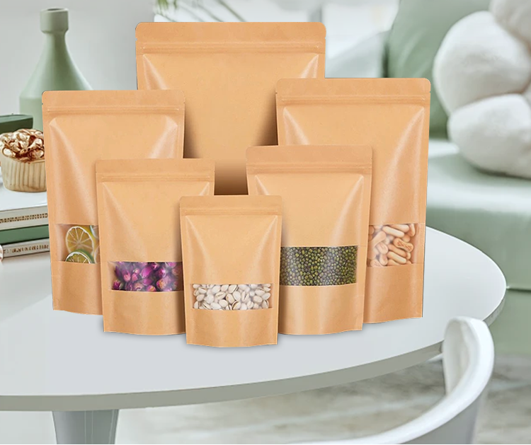 Kraft Paper Bag, Self-Standing Ziplock Bag, Tea Packaging Bag, Sealed Bag, Food Sealing Bag, Dried Fruit Thickened Sealed Bag