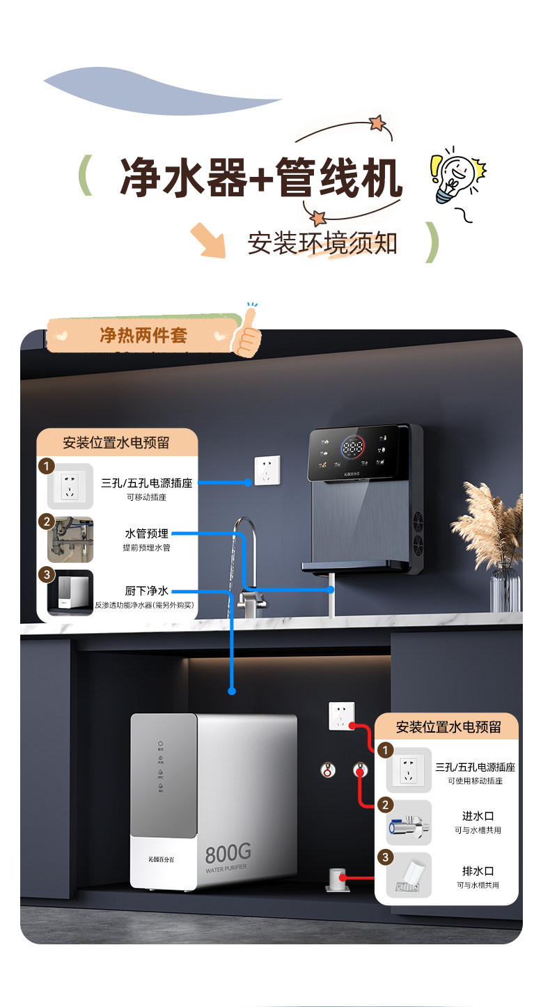 | Color Classification | 【Snow Mountain White】Pure Realm 800g Fresh & Sweet Direct Drinking High-Flow,【Instant Hot Water Set】Jingjie 800g + Instant Hot Water Dispenser with Direct Drinking Line,【Hot & Cold Combo】Pure World 800g + Hot & Cold Direct Drinking Water Dispenser,[Whole House Purification and Heating Set] Jingjie 800g + Instant Heating Direct Drinking Pipe Machine + Pre-Filtration,[Whole House Hot and Cold Set] Pure World 800g + Hot and Cold Direct Drinking Line Machine + Pre-Filter |