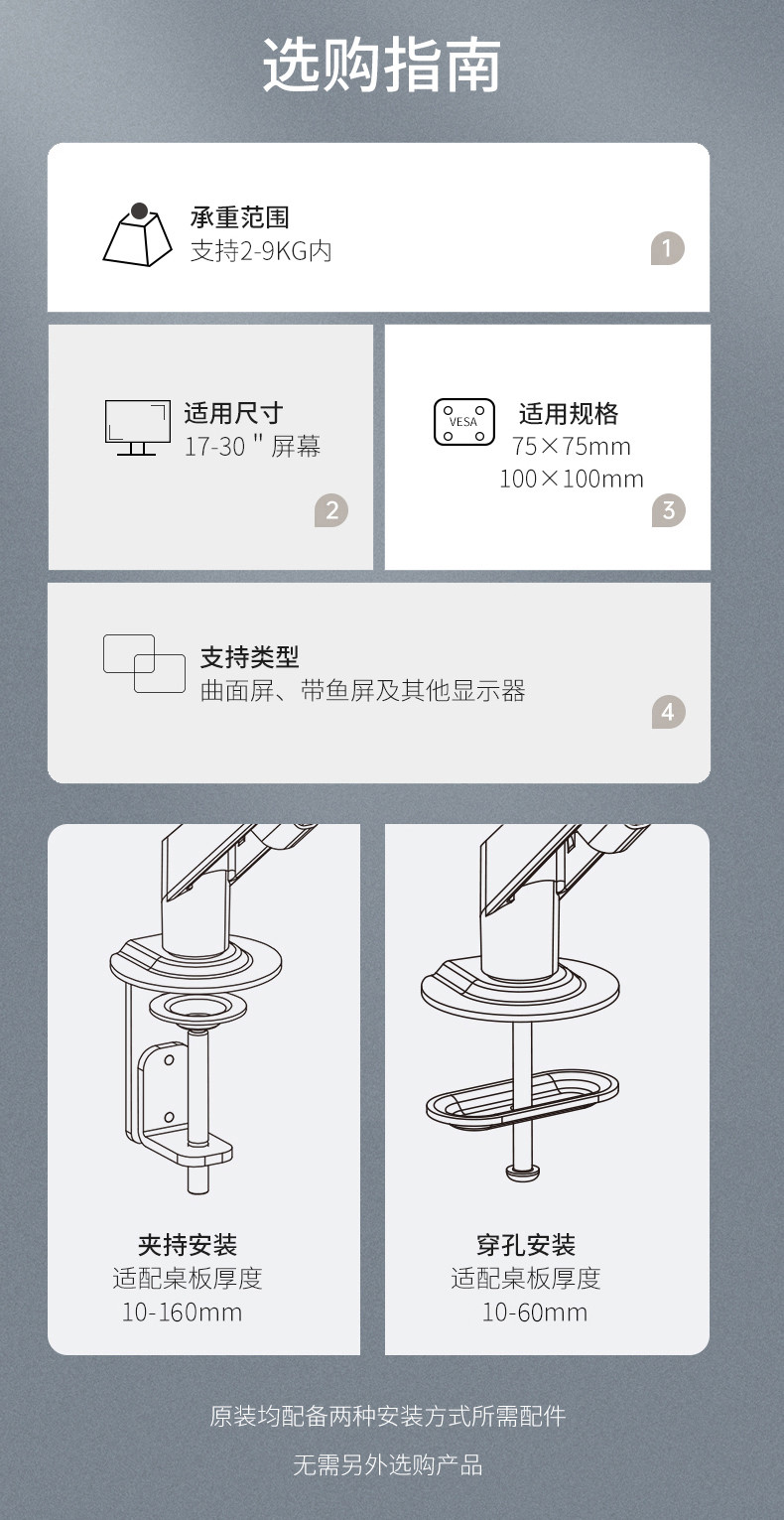 | Color Classification | [Can Clamp 16cm Thick Table]17-32inch Cantilever Bracket-Black,[Can Clamp 16cm Thick Table]17-32inch Cantilever Bracket - Gray,[Can Clamp 16cm Thick Table]17-32inch Cantilever Bracket-White,[Can Clamp 16cm Thick Table]17-32inch Cantilever Bracket-Black Wood Grain,[Can Clamp 16cm Thick Table]17-32inch Cantilever Bracket-White Wood Grain,[Dual Screen|Can Clamp 16cm Thick Table]17-32inch Cantilever Bracket-Black,[Dual Screen|Can Clamp 16cm Thick Table]17-32inch Cantilever Bracket-White,[Dual Screen|Can Clamp 16cm Thick Table]17-32inch Cantilever Bracket - Gray,[Can Clamp 16cm Thick Table]Special for Portable Screen-Black,[Can Clamp 16cm Thick Table]Special for Mobile Phones/Tablets-Black,[Can Clamp 16cm Thick Table]Special for Portable Screen-White,[Can Clamp 16cm Thick Table]Special for Mobile Phones/Tablets-White |