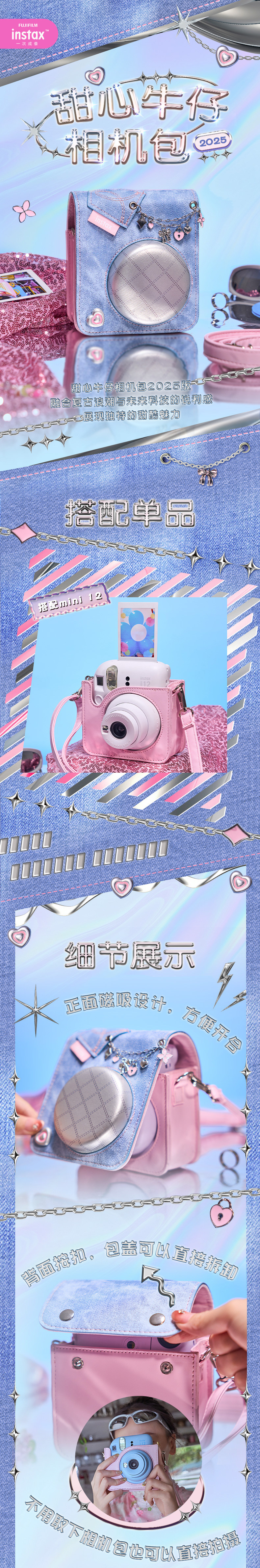 Fujifilm One-Time Imaging Genuine Fashionable Street Artifact Sweetheart Denim Camera Bag 2025 New Style