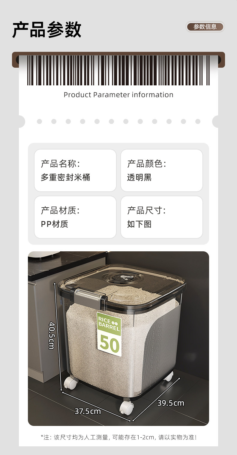 | Color Classification | Transparent Black* 5kg [Sealed and Insect-Proof Large Capacity] Free Measuring Cup,Cream White* 5kg [Sealed and Insect-Proof Large Capacity] Free Measuring Cup,Transparent Black* 10kg [Sealed and Insect-Proof Large Capacity] Free Measuring Cup,Cream White* 10kg [Sealed and Insect-Proof Large Capacity] Free Measuring Cup,Transparent Black* 15kg [Sealed and Insect-Proof Large Capacity] Free Measuring Cup,Cream White* 15kg [Sealed and Insect-Proof Large Capacity] Free Measuring Cup,Transparent Black* 25kg [Sealed and Insect-Proof Large Capacity] Free Measuring Cup,Cream White* 25kg [Sealed and Insect-Proof Large Capacity] Comes with a Measuring Cup,Transparent Black* 15kg [Sealed and Insect-Proof Large Capacity] Comes with Measuring Cup + Pulley,Cream White* 15kg [Sealed and Insect-Proof Large Capacity] Comes with Measuring Cup + Pulley,Transparent Black* 25kg [Sealed and Insect-Proof Large Capacity] Comes with Measuring Cup + Pulley,Cream White* 25kg [Sealed and Insect-Proof Large Capacity] Comes with Measuring Cup + Pulley |