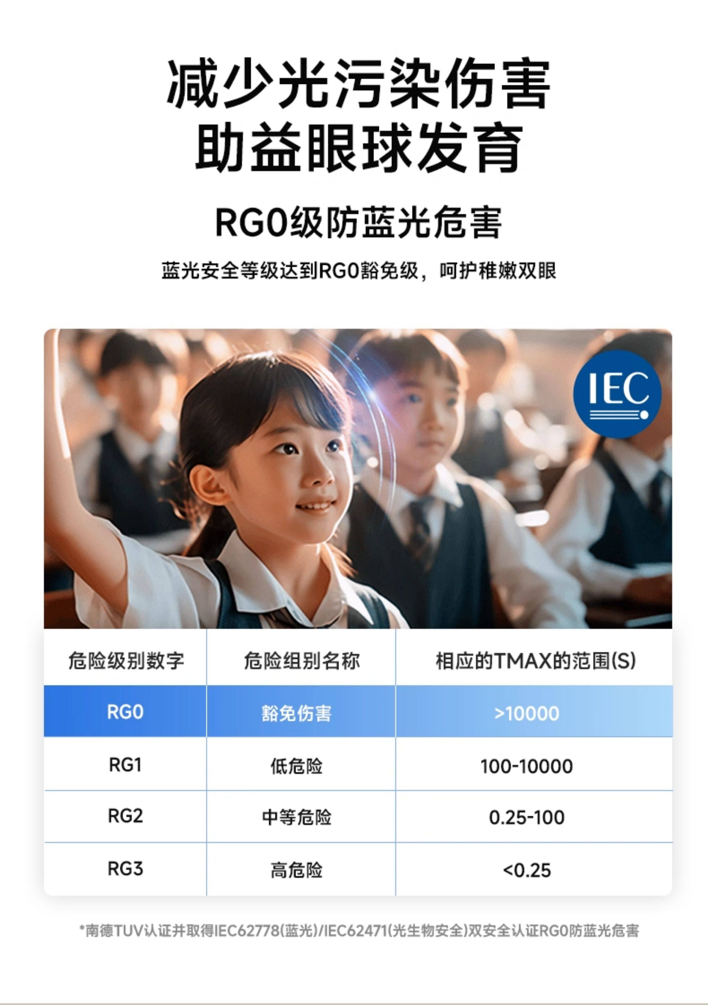 | Anti-Blue Light Index (Rg) | Rg0 Is Not Harmful |
