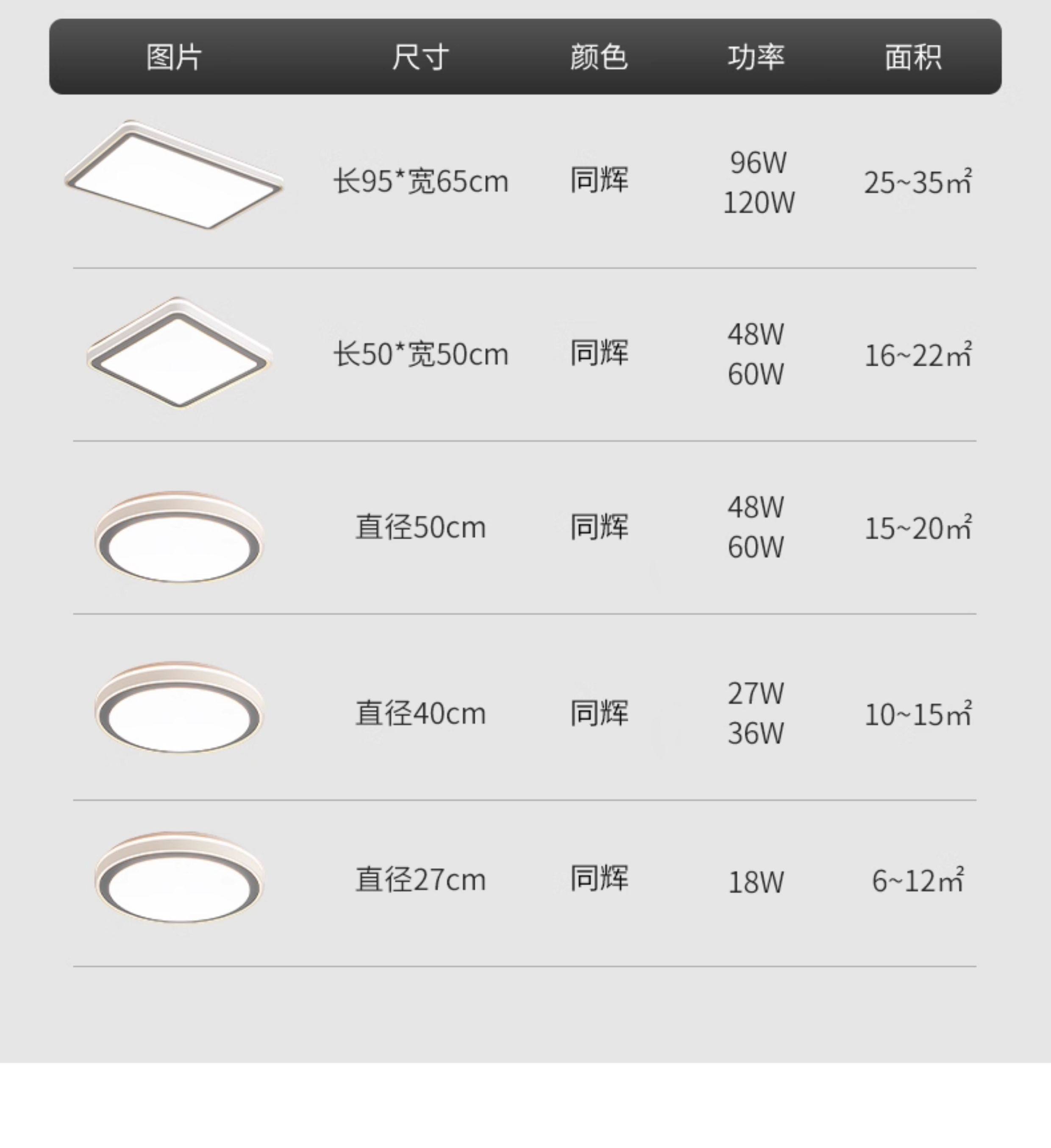 | Color Classification | Round 27cm High Brightness White Light 18W[Full Spectrum Eye Protection],Round 40cm High Brightness White Light 27W[Full Spectrum Eye Protection],Round 40cm High Brightness White Light 36W[Full Spectrum Eye Protection],Round 40cm Three-Tone Lighting 36W[Full Spectrum Eye Protection],Round 40cm Stepless Remote Control 36W[Full Spectrum Eye Protection],Round 40cm Offline Voice 36W[Full Spectrum Eye Protection],Round 40cm Tmall Elf 36W[Full Spectrum Eye Protection],Round 40cm Mijia Smart Control 36W[Full Spectrum Eye Protection],Round 50cm High Brightness White Light 48W[Full Spectrum Eye Protection],Round 50cm Three-Tone Lighting 48W[Full Spectrum Eye Protection],Round 50cm Stepless Remote Control 48W[Full Spectrum Eye Protection],Round 50cm High Brightness White Light 60W[Full Spectrum Eye Protection],Round 50cm Three-Tone Lighting 60W[Full Spectrum Eye Protection],Round 50cm Stepless Remote Control 60W[Full Spectrum Eye Protection],Round 50cm Offline Voice 60W[Full Spectrum Eye Protection],Round 50cm Tmall Elf 60W[Full Spectrum Eye Protection],Round 50cm Mijia Smart Control 60W[Full Spectrum Eye Protection],Square 50X50Cm High Brightness White Light 60W[Full Spectrum Eye Protection],Square 50X50Cm Three-Tone Lighting 60W[Full Spectrum Eye Protection],Square 50X50Cm Stepless Remote Control 60W[Full Spectrum Eye Protection],Square 50X50Cm Offline Voice 60W[Full Spectrum Eye Protection],Square 50X50Cm Tmall Elf 60W[Full Spectrum Eye Protection],Square 50X50Cm Mijia Smart Control 60W[Full Spectrum Eye Protection],Square 95X65Cm High Brightness White Light 96W[Full Spectrum Eye Protection],Square 95X65Cm Three-Tone Lighting 96W[Full Spectrum Eye Protection],Square 95X65Cm Stepless Remote Control 96W[Full Spectrum Eye Protection],Square 95X65Cm High Brightness White Light 120W[Full Spectrum Eye Protection],Square 95X65Cm Three-Tone Lighting 120W[Full Spectrum Eye Protection],Square 95X65Cm Stepless Remote Control 120W[Full Spectrum Eye Protection],Square 95X65Cm Offline Voice 120W[Full Spectrum Eye Protection],Square 95X65Cm Tmall Elf 120W[Full Spectrum Eye Protection],Square 95X65Cm Mijia Smart Control 120W[Full Spectrum Eye Protection] |