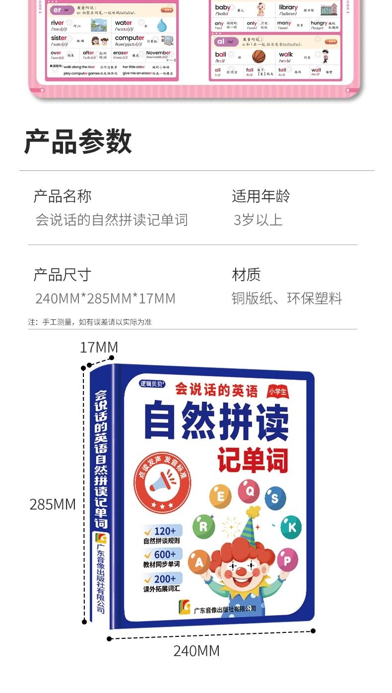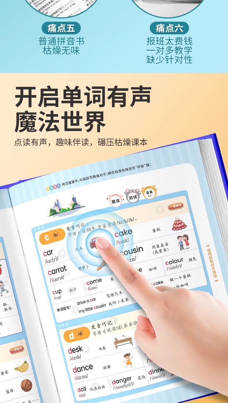 Talking English Phonics Word Memorization Book for Elementary School Students English Point-Reading Audio Book English Synchronized Audio Book
