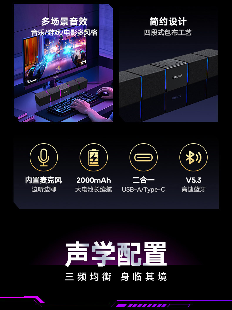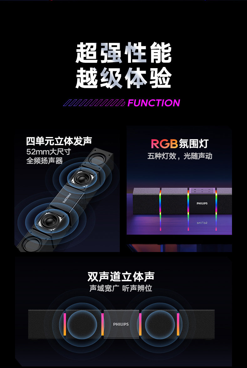 Philips Computer Speakers Spa5600 Desktop Home Bluetooth Gaming Speakers Subwoofer High Sound Quality Rgb Gaming