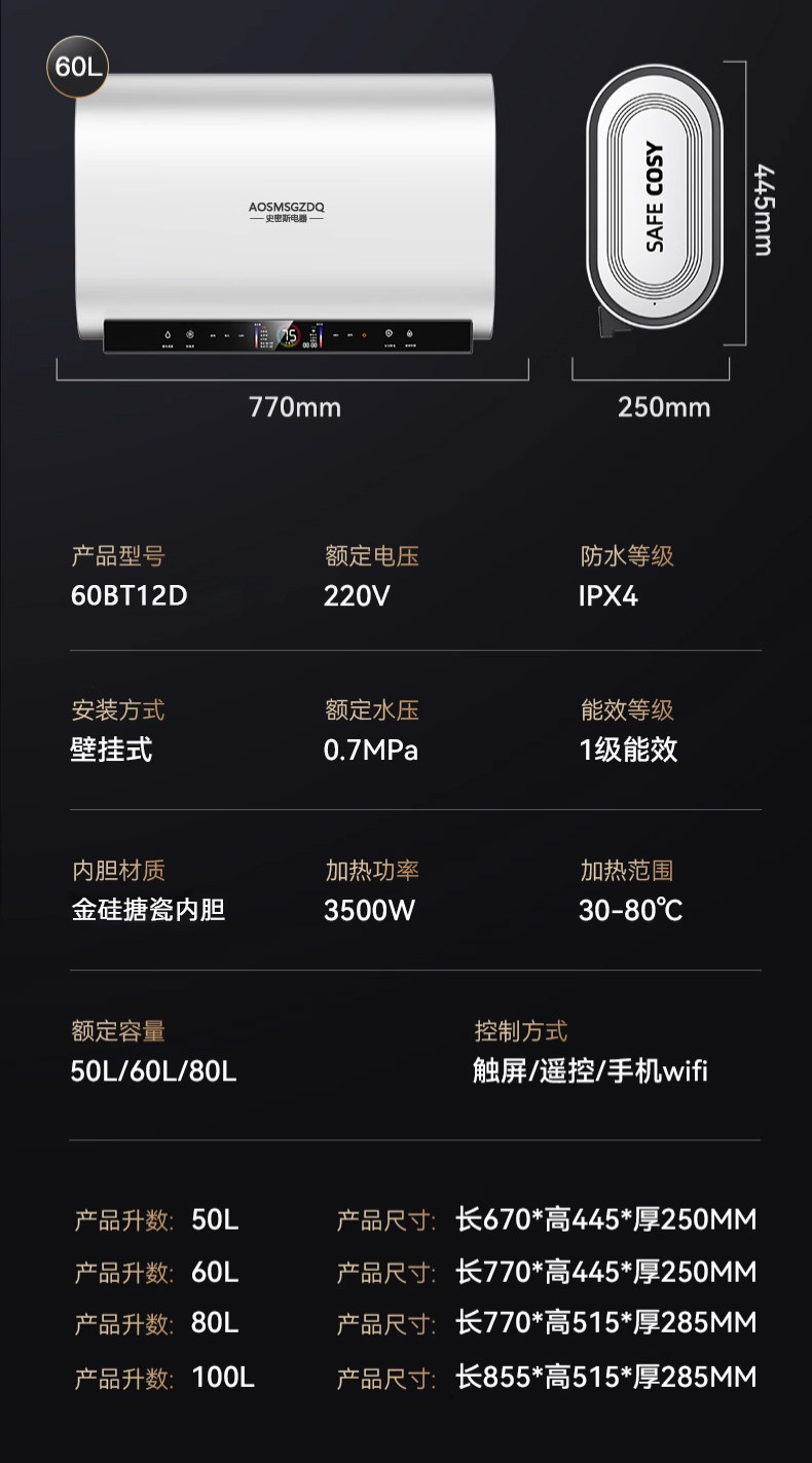 | Color Classification | Mobile Smart Control 50-Liter Flat Barrel Remote Control Touch Screen Color Steel Gold Frequency Conversion First-Level Energy-Saving Door-To-Door Installation,Mobile Smart Control 60 Liter Flat Bucket Remote Control Touch Screen Color Steel Gold Frequency Conversion First-Level Energy-Saving Door-To-Door Installation,Mobile Smart Control 80 Liter Flat Barrel Remote Control Touch Screen Color Steel Gold Frequency Conversion First-Level Energy-Saving Door-To-Door Installation,Mobile Smart Control 50-Liter Flat Bucket Remote Control Touch Screen Color Steel White Frequency Conversion First-Level Energy-Saving Door-To-Door Installation,Mobile Smart Control 60 Liter Flat Bucket Remote Control Touch Screen Color Steel White Frequency Conversion First-Level Energy-Saving Door-To-Door Installation,Mobile Smart Control 80 Liter Flat Barrel Remote Control Touch Screen Color Steel White Frequency Conversion First-Level Energy-Saving Door-To-Door Installation,Mobile Smart Control 50-Liter Flat Barrel Remote Control Touch Screen Color Steel Gray Frequency Conversion First-Level Energy-Saving Door-To-Door Installation,Mobile Smart Control 60 Liter Flat Bucket Remote Control Touch Screen Color Steel Gray Frequency Conversion First-Level Energy-Saving Door-To-Door Installation,Mobile Smart Control 80 Liter Flat Barrel Remote Control Touch Screen Color Steel Gray Frequency Conversion First-Level Energy-Saving Door-To-Door Installation,Electronic Magnesium Rod 50 Liter Flat Barrel Remote Control Touch Screen Color Steel Blue Frequency Conversion First-Level Energy-Saving Door-To-Door Installation,Electronic Magnesium Rod 60 Liter Flat Barrel Remote Control Touch Screen Color Steel Blue Frequency Conversion First-Level Energy-Saving Door-To-Door Installation,Electronic Magnesium Rod 80 Liter Flat Barrel Remote Control Touch Screen Color Steel Blue Frequency Conversion First-Level Energy-Saving Door-To-Door Installation,Mobile Phone Intelligent Control Electronic Magnesium Rod 50 Liter Flat Barrel Remote Control Touch Screen Color Steel White Frequency Conversion First-Level Energy-Saving Door-To-Door Installation,Mobile Phone Intelligent Control Electronic Magnesium Rod 60 Liter Flat Barrel Remote Control Touch Screen Color Steel White Frequency Conversion First-Level Energy Saving Door-To-Door Installation,Mobile Phone Intelligent Control Electronic Magnesium Rod 80 Liter Flat Barrel Remote Control Touch Screen Color Steel White Frequency Conversion First-Level Energy-Saving Door-To-Door Installation,Mobile Phone Intelligent Control Electronic Magnesium Rod 100 Liter Flat Barrel Remote Control Touch Screen Color Steel White Frequency Conversion First-Level Energy-Saving Door-To-Door Installation,Mobile Phone Intelligent Control Electronic Magnesium Rod 50 Liter Flat Barrel Remote Control Touch Screen Color Steel Gray Frequency Conversion First-Level Energy-Saving Door-To-Door Installation,Mobile Phone Intelligent Control Electronic Magnesium Rod 60 Liter Flat Barrel Remote Control Touch Screen Color Steel Gray Frequency Conversion First-Level Energy-Saving Door-To-Door Installation,Mobile Phone Intelligent Control Electronic Magnesium Rod 80 Liter Flat Barrel Remote Control Touch Screen Color Steel Gray Frequency Conversion First-Level Energy Saving Door-To-Door Installation,Mobile Phone Intelligent Control Electronic Magnesium Rod 100 Liter Flat Barrel Remote Control Touch Screen Color Steel Gray Frequency Conversion First-Level Energy-Saving Door-To-Door Installation,Mobile Phone Intelligent Control Electronic Magnesium Rod 50 Liter Flat Barrel Remote Control Touch Screen Color Steel Gold Frequency Conversion First-Level Energy-Saving Door-To-Door Installation,Mobile Phone Intelligent Control Electronic Magnesium Rod 60 Liter Flat Barrel Remote Control Touch Screen Color Steel Gold Frequency Conversion First-Level Energy-Saving Door-To-Door Installation,Mobile Phone Intelligent Control Electronic Magnesium Rod 80 Liter Flat Barrel Remote Control Touch Screen Color Steel Gold Frequency Conversion First-Level Energy-Saving Door-To-Door Installation,Mobile Phone Intelligent Control Electronic Magnesium Rod 100 Liter Flat Barrel Remote Control Touch Screen Color Steel Gold Frequency Conversion First-Level Energy Saving Door-To-Door Installation,Flagship White Smart-Controlled Electronic Magnesium Anode 50L 3500W Water Heater - Automatic Power-Off, Color Steel, Inverter Technology, Super Energy Efficiency, and On-Site Installation.,Flagship White Smart-Controlled Electronic Magnesium Rod 60L 3500W Water Heater - Automatic Shut-Off, Color Steel, Variable Frequency, Super Energy Efficient (Tier 1), with On-Site Installation.,Flagship White Smart-Controlled Electronic Magnesium Rod 80L 3500W Water Heater - Automatic Power-Off, Color Steel, Inverter Technology, Super Energy Efficiency, and On-Site Installation.,Flagship White Smart-Controlled Electronic Magnesium Anode 100L 3500W Water Purifier with Automatic Power-Off, Color Steel, Variable Frequency, Super Energy Efficiency, and On-Site Installation.,Flagship Gray Mobile Phone Intelligent Control Electronic Magnesium Rod 50 Liters 3500W Water Outage Color Steel Frequency Conversion Super First-Class Energy Efficiency Door-To-Door Installation,Flagship Gray Mobile Phone Intelligent Control Electronic Magnesium Rod 60 Liters 3500W Water Outage Color Steel Frequency Conversion Super First-Level Energy Efficiency Door-To-Door Installation,Flagship Gray Mobile Phone Intelligent Control Electronic Magnesium Rod 80 Liters 3500W Water Outage Color Steel Frequency Conversion Super First-Class Energy Efficiency Door-To-Door Installation,Flagship Gray Mobile Phone Intelligent Control Electronic Magnesium Rod 100 Liters 3500W Water Outage Color Steel Frequency Conversion Super First-Class Energy Efficiency Door-To-Door Installation,Flagship Golden Mobile Phone Intelligent Control Electronic Magnesium Rod 50 Liters 3500W Water Outage Color Steel F
