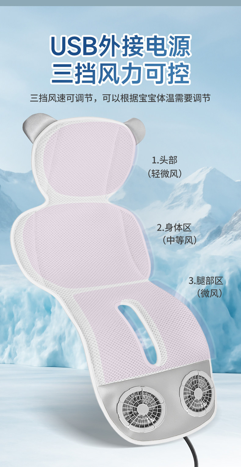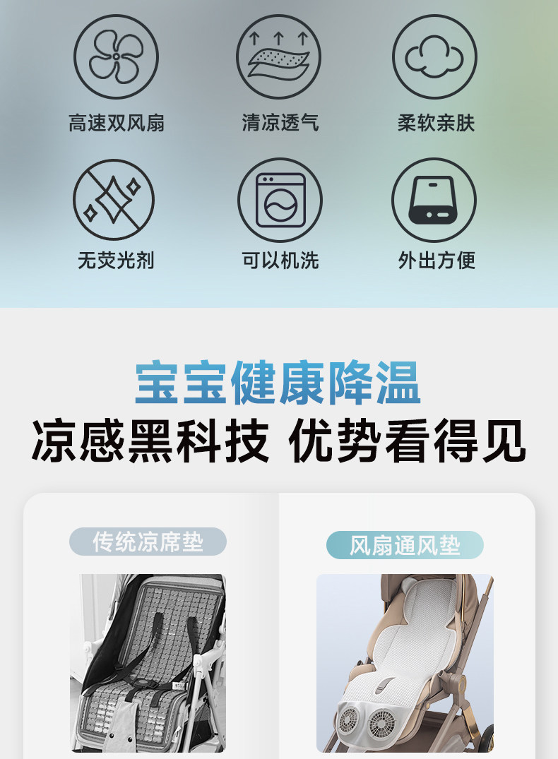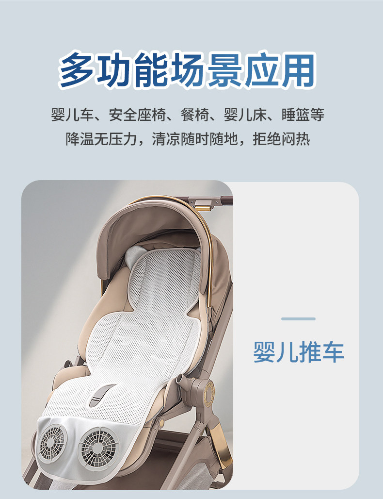 Zhitin Cat Stroller Ventilated Cooling Mat Safety Seat Cooling Pad Universal Electric Fan for Strollers Summer Cooling