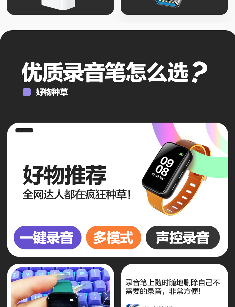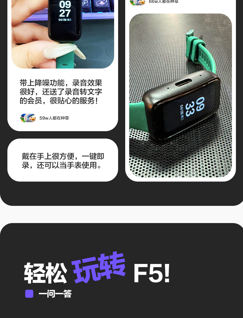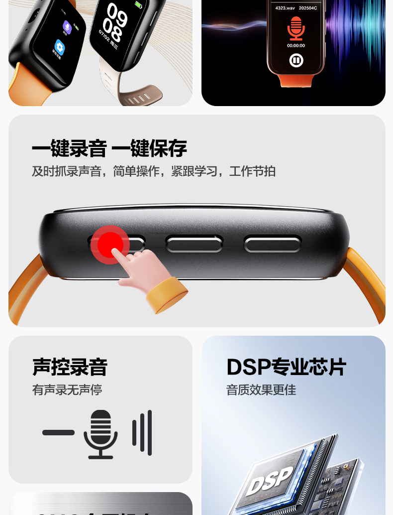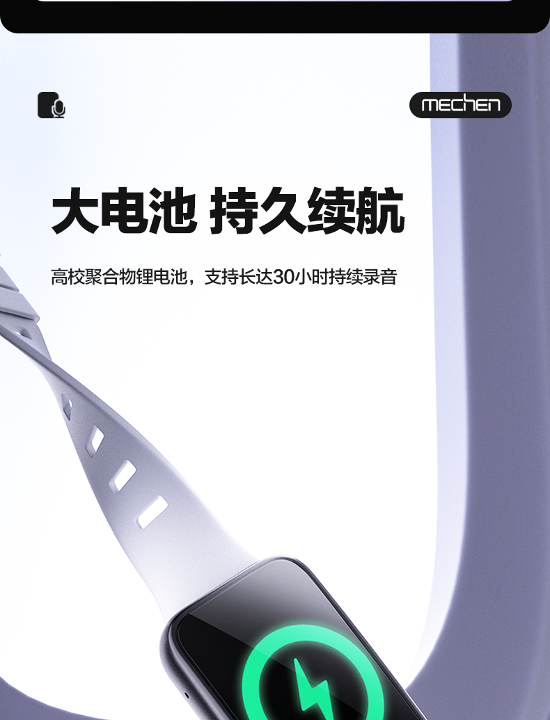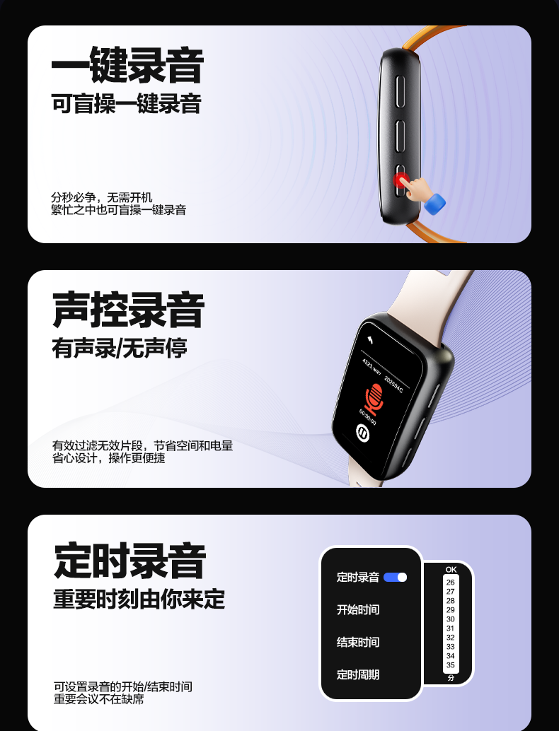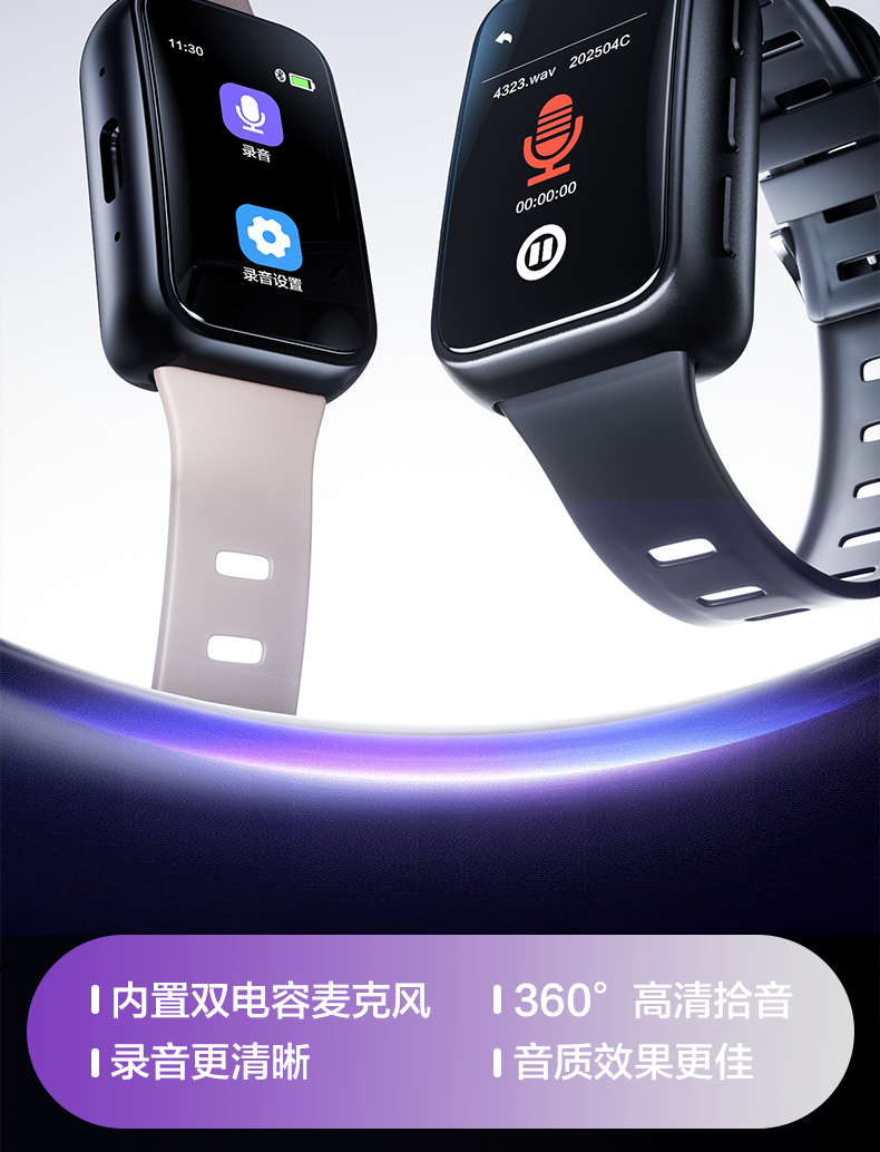 Wristband Professional Voice Recorder with High-Definition Noise Reduction, Portable for Students to Use in Class, Converts Speech to Text, Recording Device