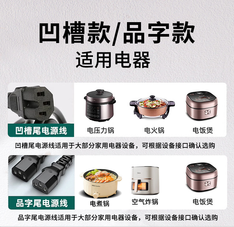 Suitable for Desktop Host Monitor Suffix Computer Pure Copper Power Cord Three-Hole Universal Printer with Wire Plug
