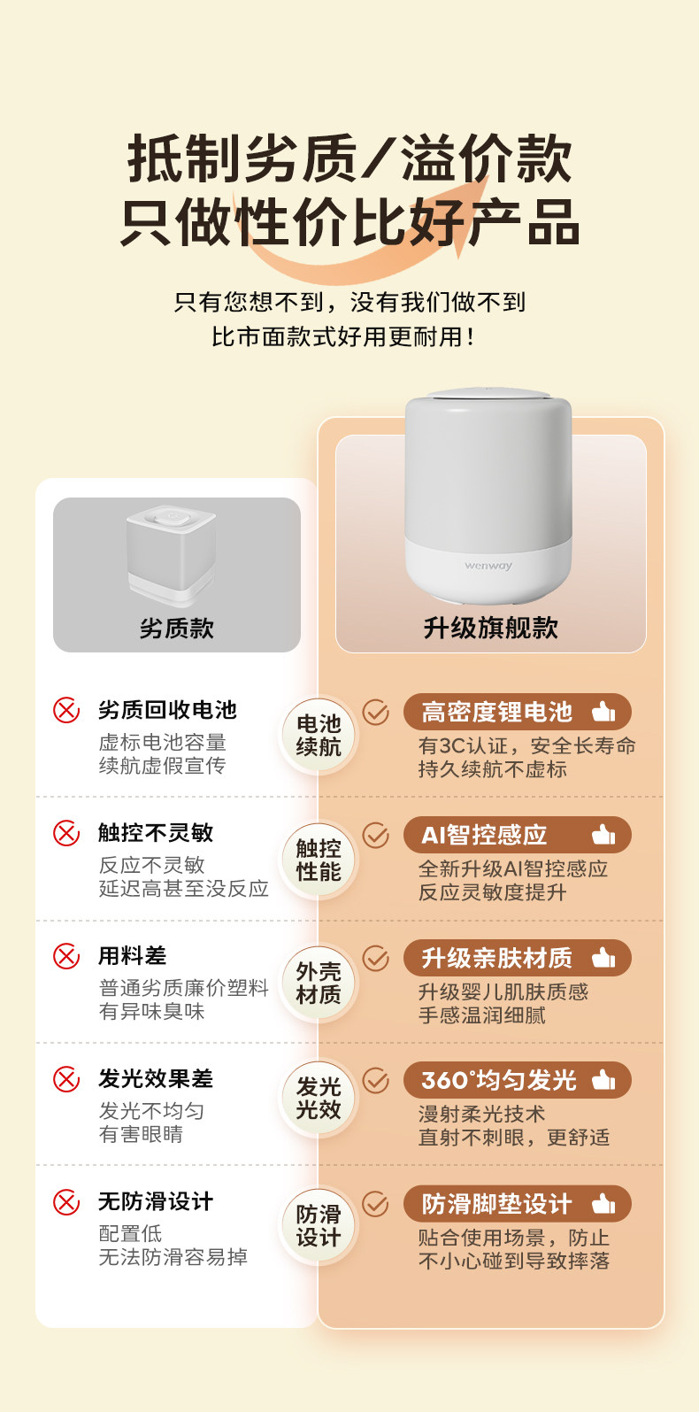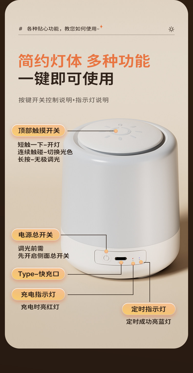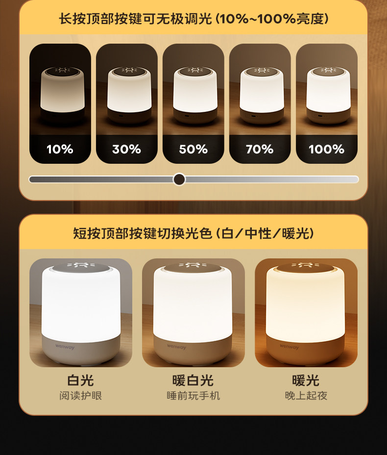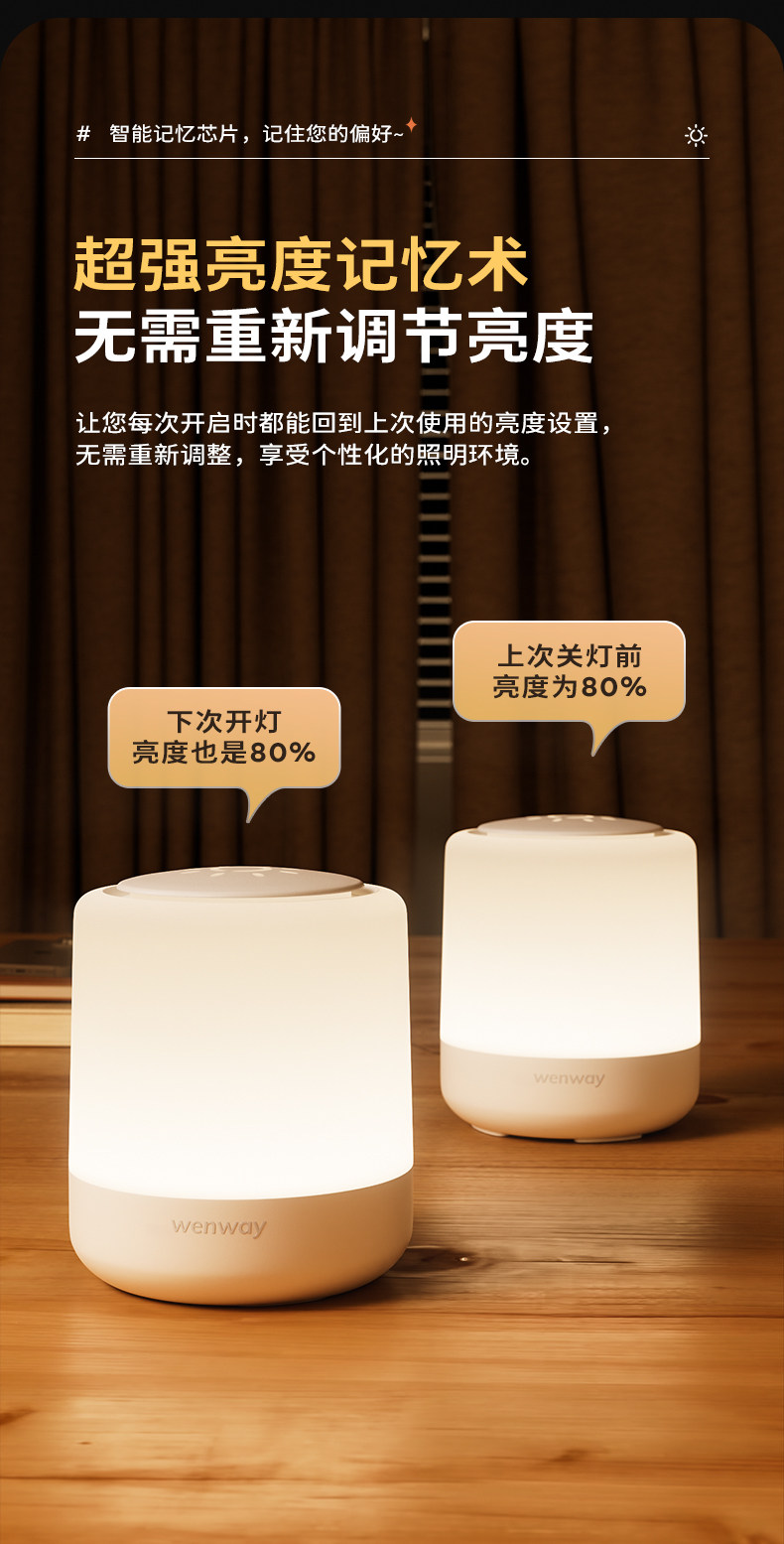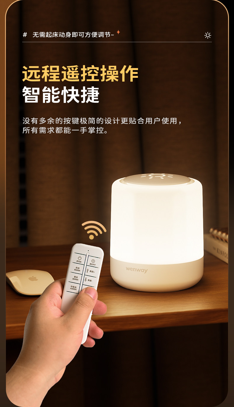 Wenwei Remote Control Rechargeable Night Light Bedroom Bedside Lamp Touch Pat Lamp Table Lamp Baby Feeding Eye Protection Sleep Lamp