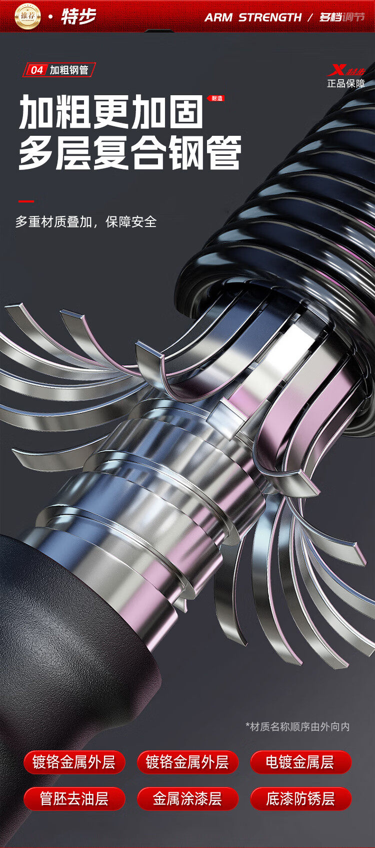 Xtep Arm Strength Device for Men, New Adjustable Arm Strength Bar, 40kg 50 Spring, Muscle Strength Training, Arm Fitness