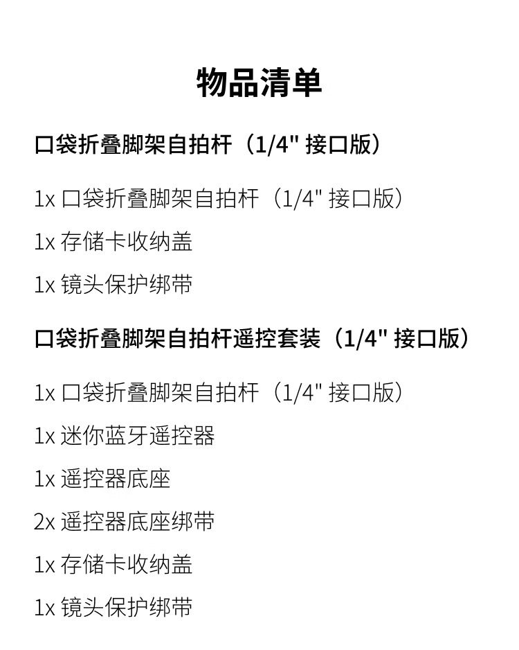 | Color Classification | Pocket Foldable Tripod Selfie Stick (1/4" Interface Version),Pocket Foldable Tripod Selfie Stick Remote Control Package (1/4" Interface Version) |