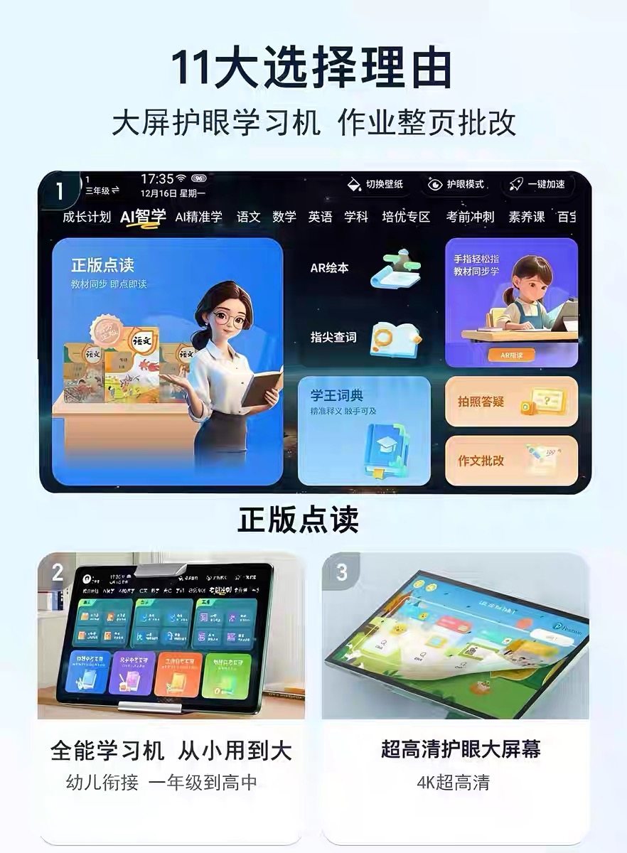 2025 New Ai Intelligent Learning Machine, Universal Tablet for Primary School, Junior High School and High School, Children's Early Education Machine, English Reading Machine