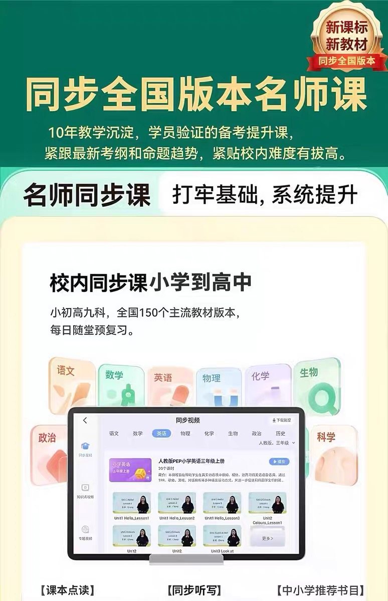 | Built-In Textbook Version | People's Education Press,Jiangsu Education Edition,Guangdong Education Edition,Hebei Education Edition,Beijing Normal University Edition,Yilin Version,Ministry of Education Edition,Xiangjiao Version,Scientific Version,Lu Jiao Edition |