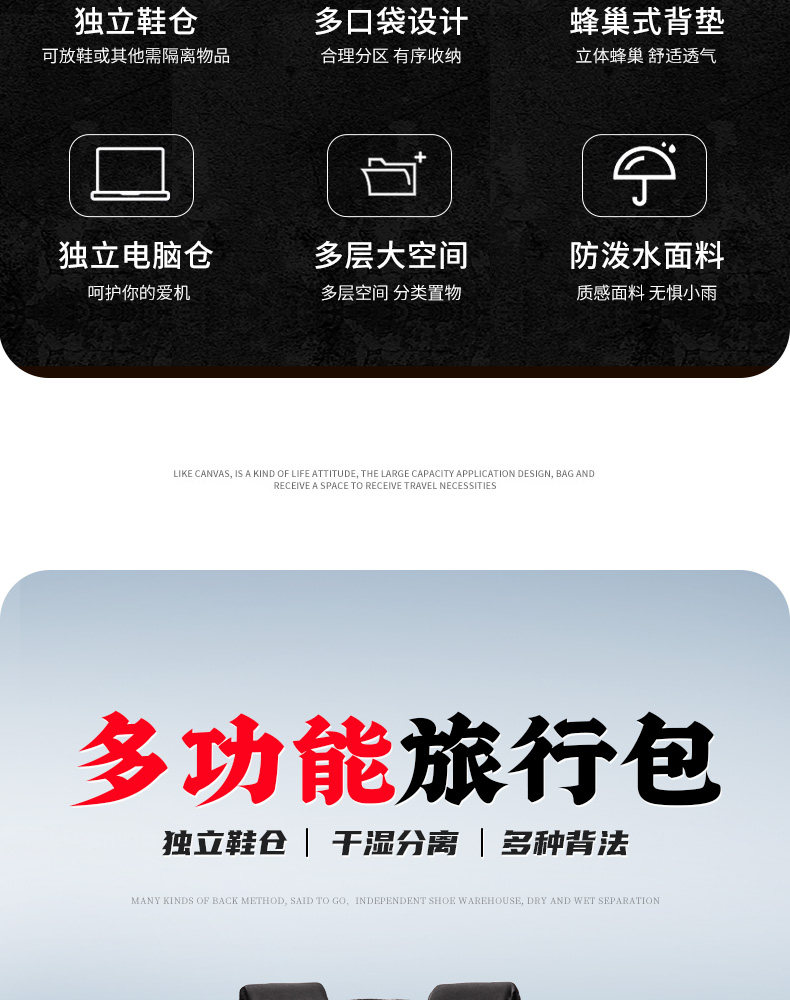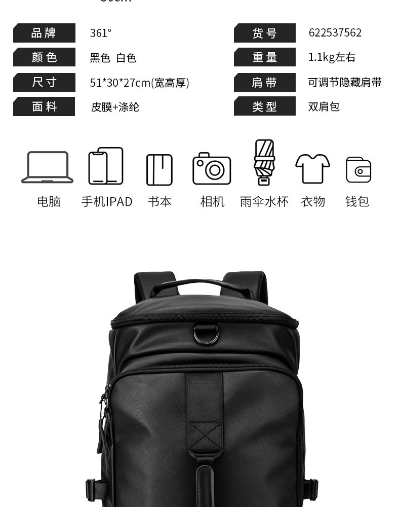 | Internal Structure | Mesh Bag,Cell Phone Bag,Main Bag,Dark Grid,Laminated Zipper Bag,Computer Pocket |