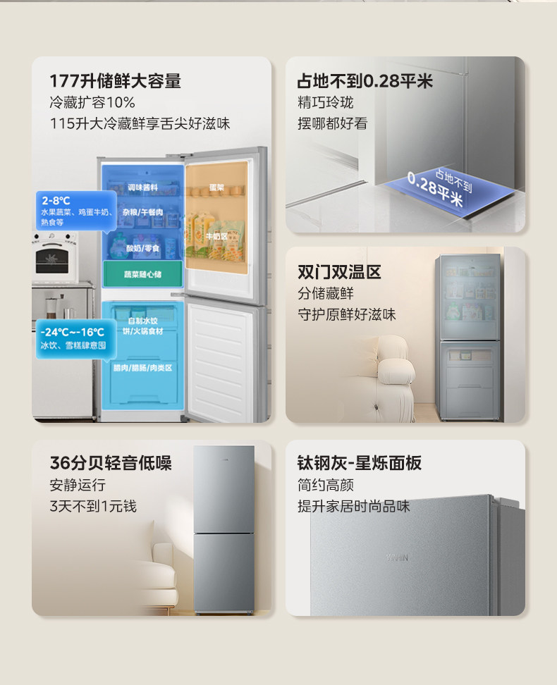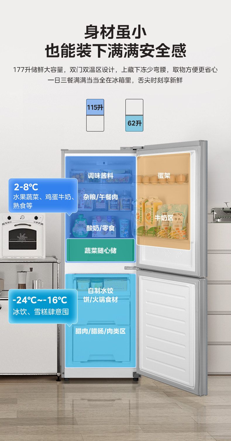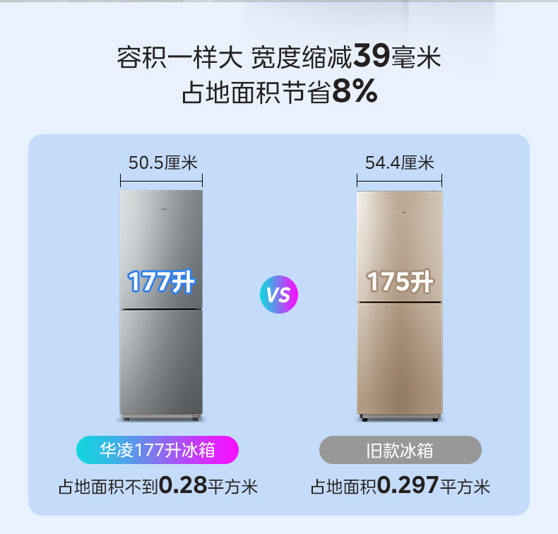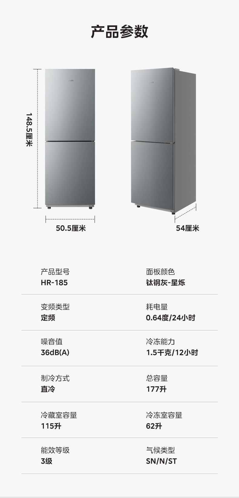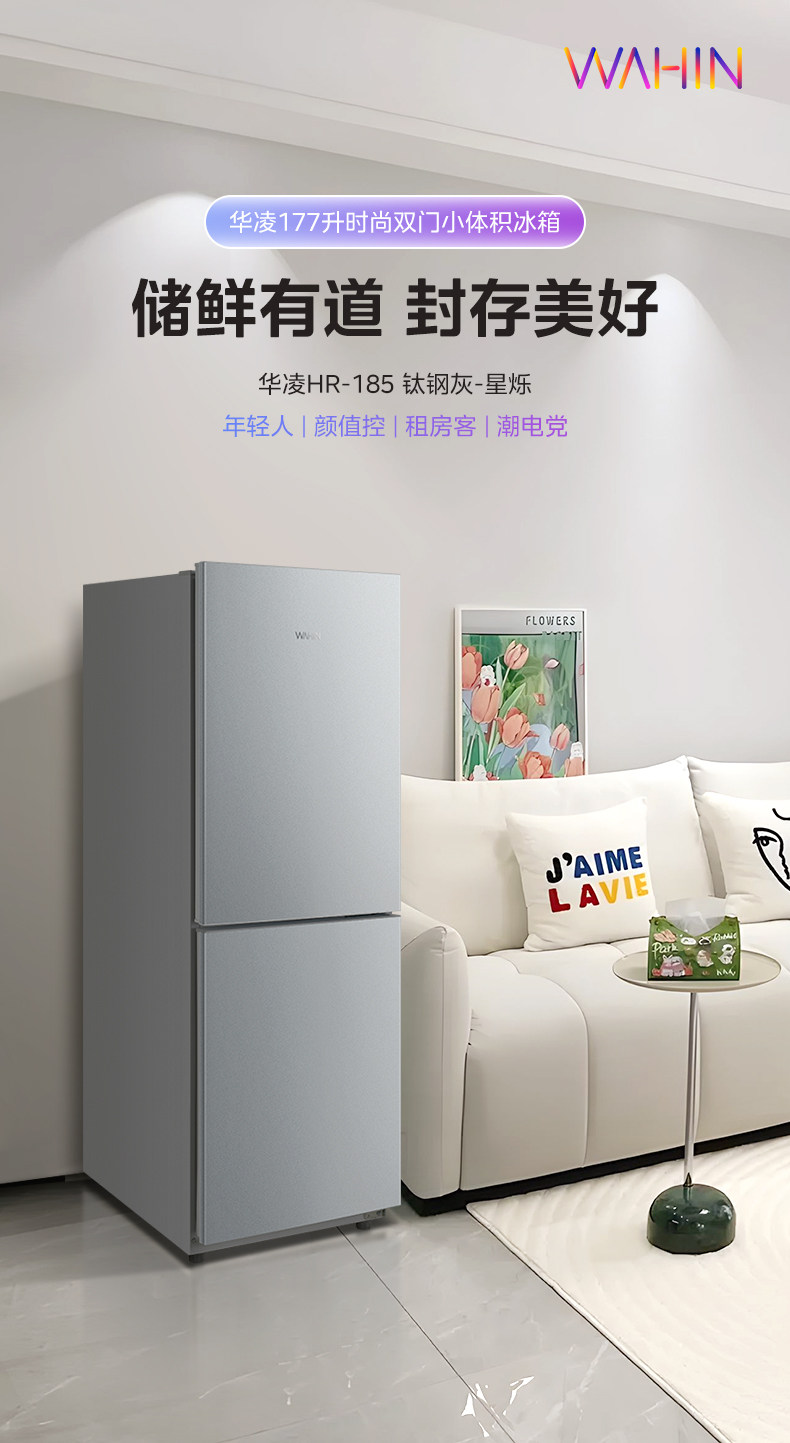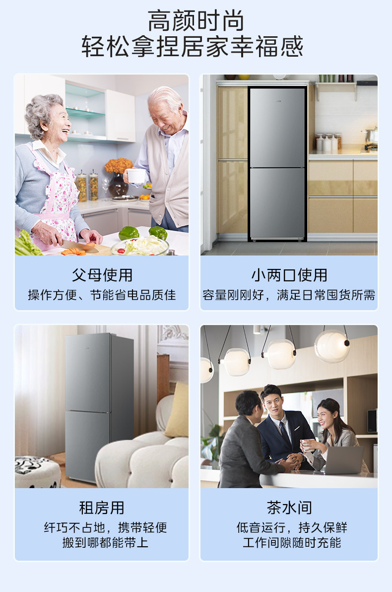 Midea's Hualing 185 Refrigerator Is a Double-Door Household Energy-Saving Ultra-Thin Freezer and Refrigerator for Rental Apartments and Dormitories
