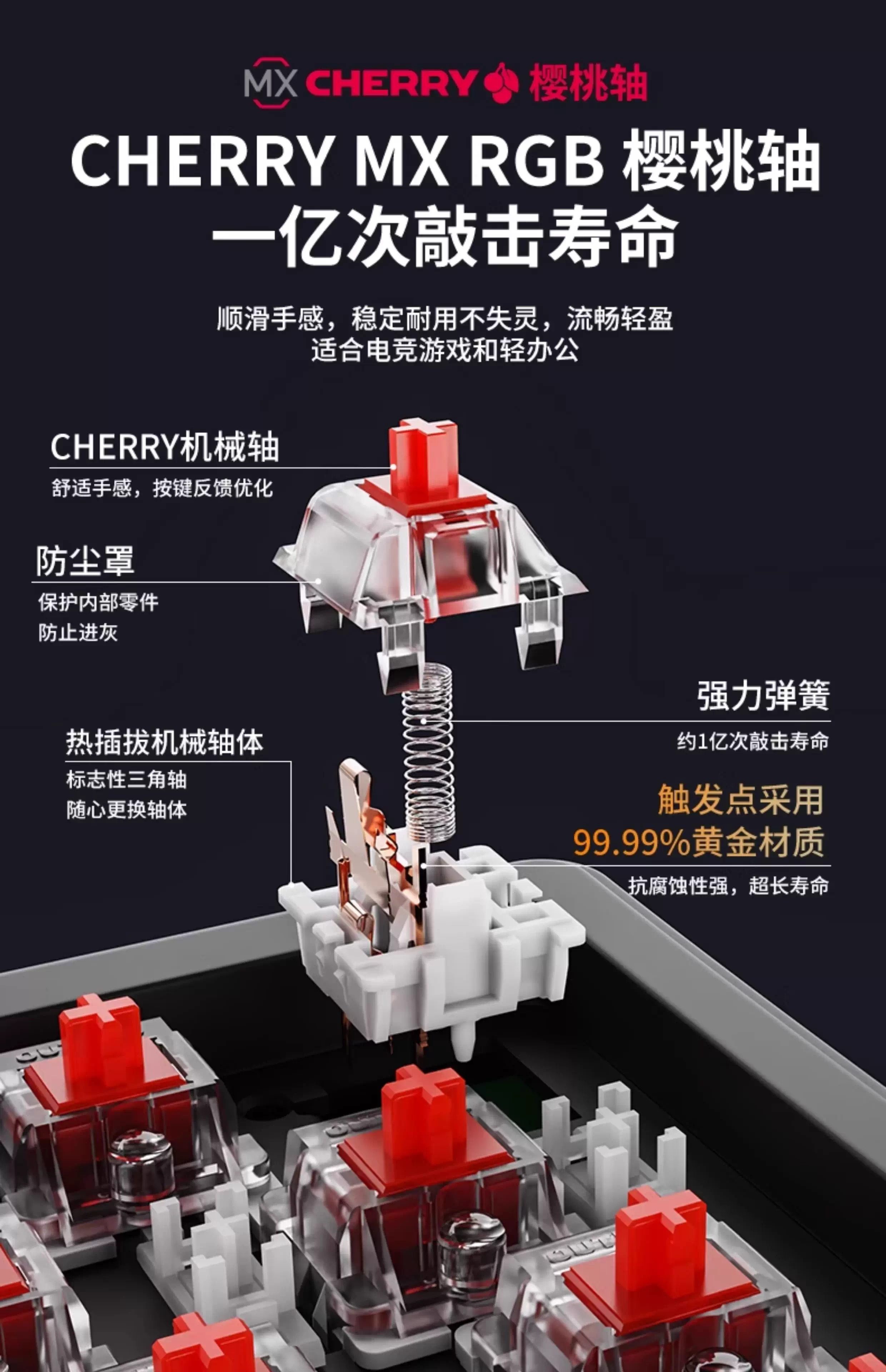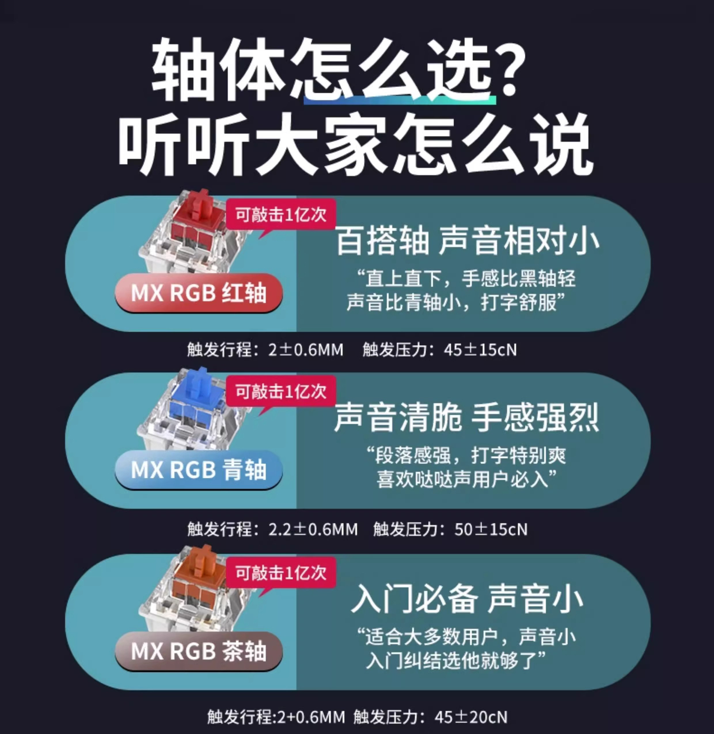 | Axis Name | Cherry Mx Rgb [Green Axis-Crisp Feel],Cherry Mx Rgb [Brown Switch-Office Game],Cherry Mx Rgb [Red Shaft - Quiet and Comfortable] |