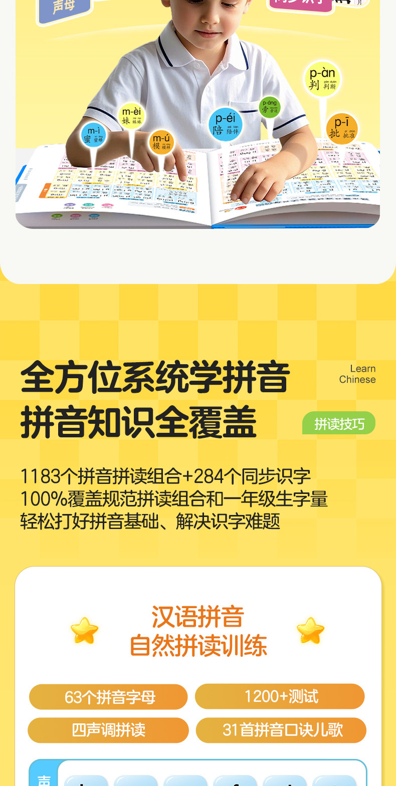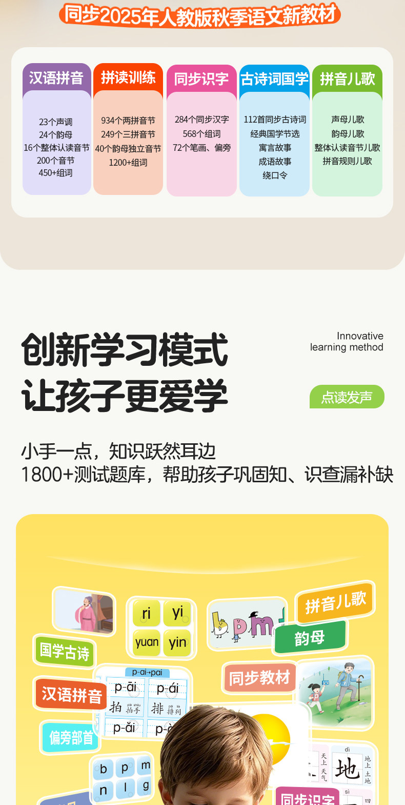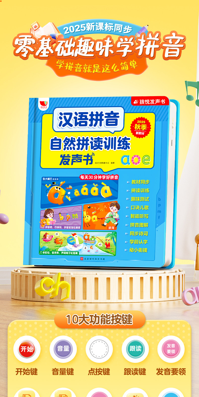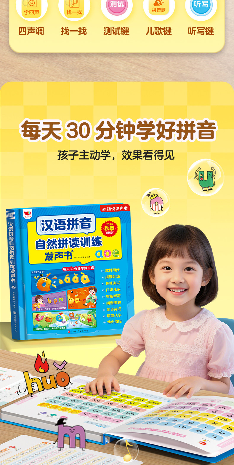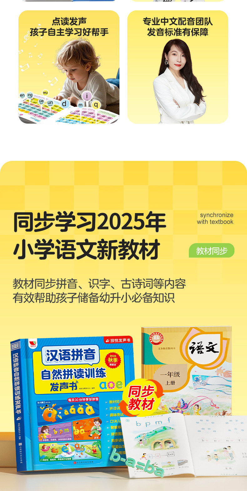 Synchronized First-Grade Chinese Language Textbook, Talking Chinese Pinyin, Preschool to Primary School Transition, Natural Phonics Training Sound Book