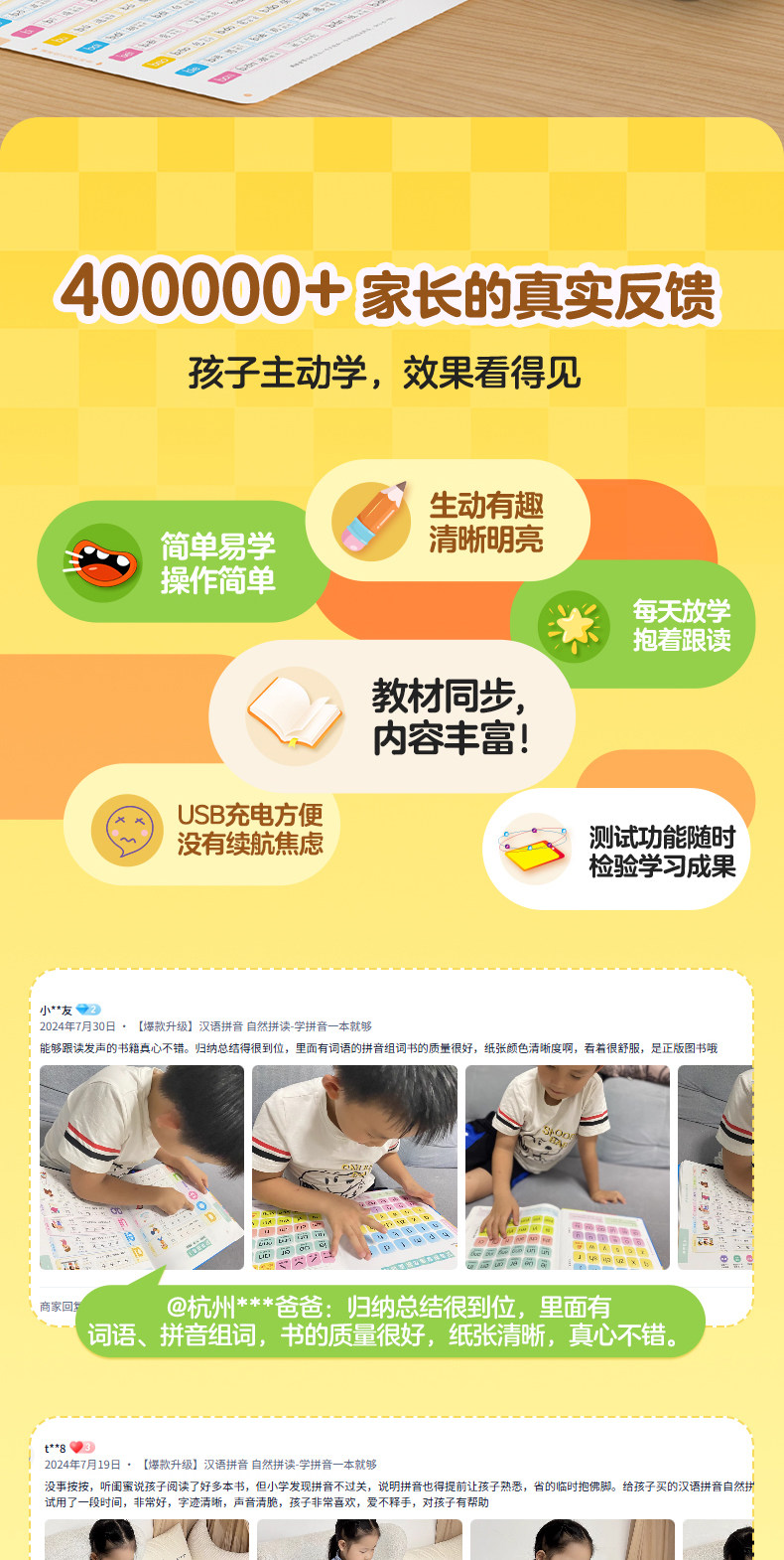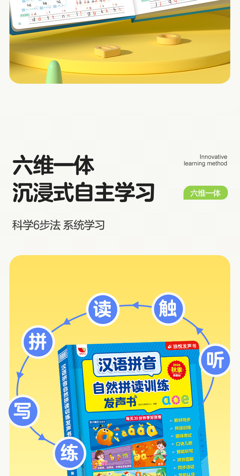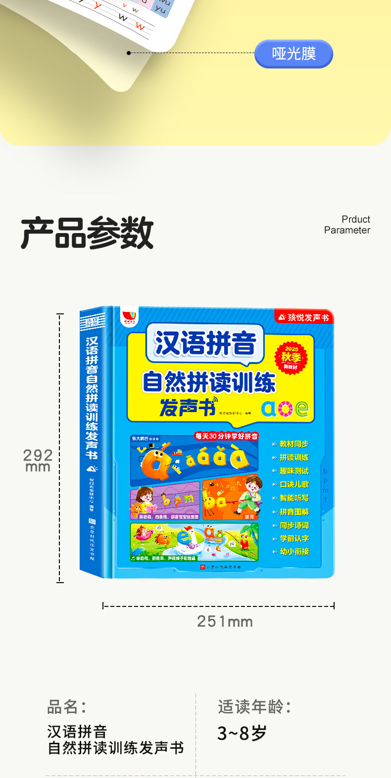 | Color Classification | [1:1 Classroom Restoration]Chinese Pinyin Phonics Training Sound Book,[Elementary School Transition Tool]Chinese, Mathematics and English Audio Book,[2 Books Are More Cost-Effective]Chinese Pinyin Pronunciation Book + Synchronized Chinese Language Learning Workbook,[2 Books Are More Cost-Effective]Chinese Pinyin Pronunciation Book + Chinese Good Words and Sentences Pronunciation Book,[There Is a Method to Learning Tang Poetry]Tang Poetry 300 First Edition Sound Book (with Translation),[Learning Idioms Is Really Fun]Idiom Story Sound Book,[Elementary School Literacy Master]Primary School Chinese Language Synchronous Literacy Audio Book |
