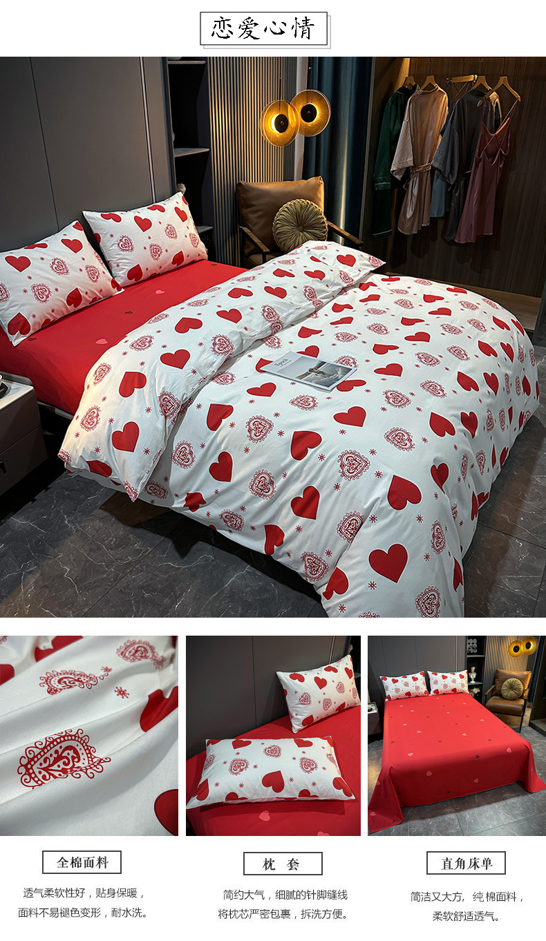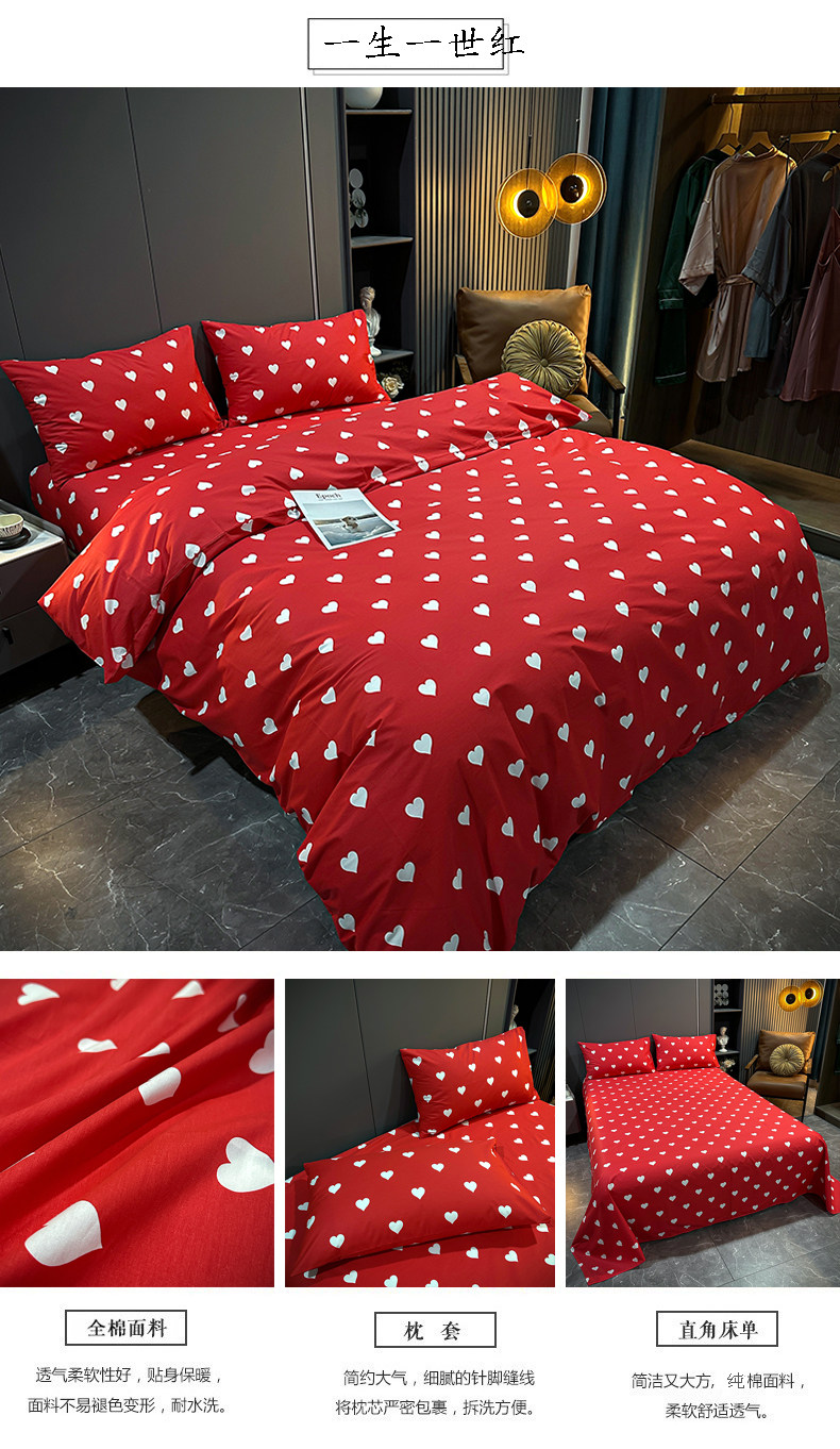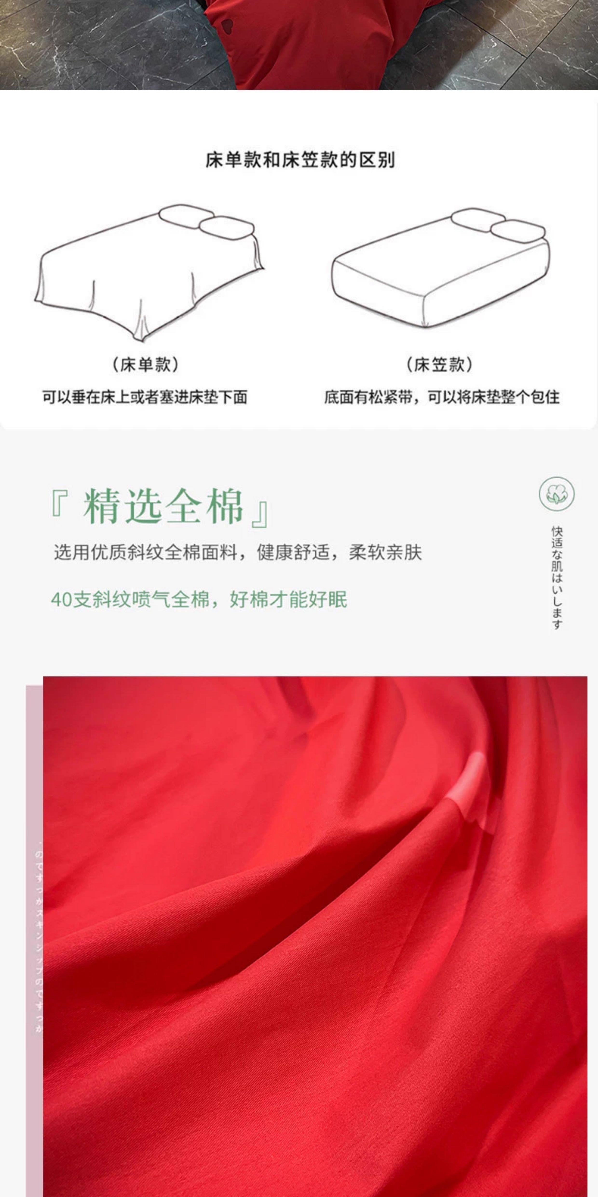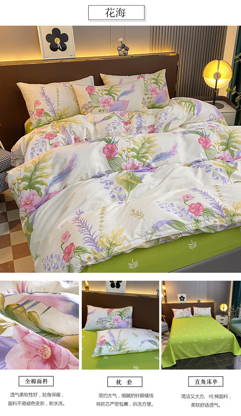 | Applicable Bed Size | 1.2m Dormitory Bed Sheet Three-Piece Set (Suitable for Quilt 150*200),1.5m Bed Sheet Four-Piece Set (Suitable for Quilt 200*230),1.8m Bed Sheet Four-Piece Set (Suitable for Quilt 200*230),2.0m Bed Sheet Four-Piece Set (Suitable for Quilt 220*240),1.5-Piece Fitted Sheet Set,1.8-Piece Fitted Sheet Set |