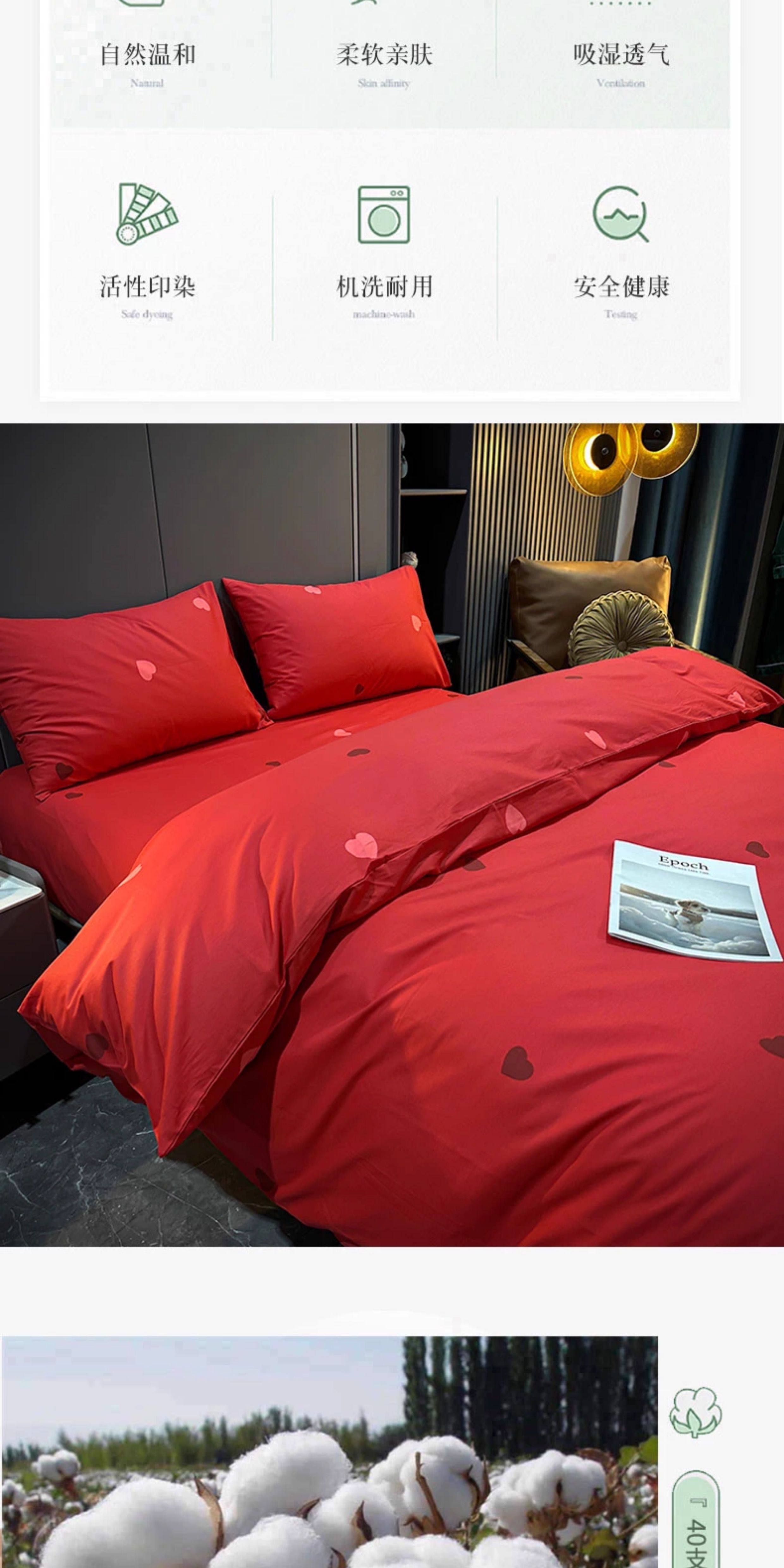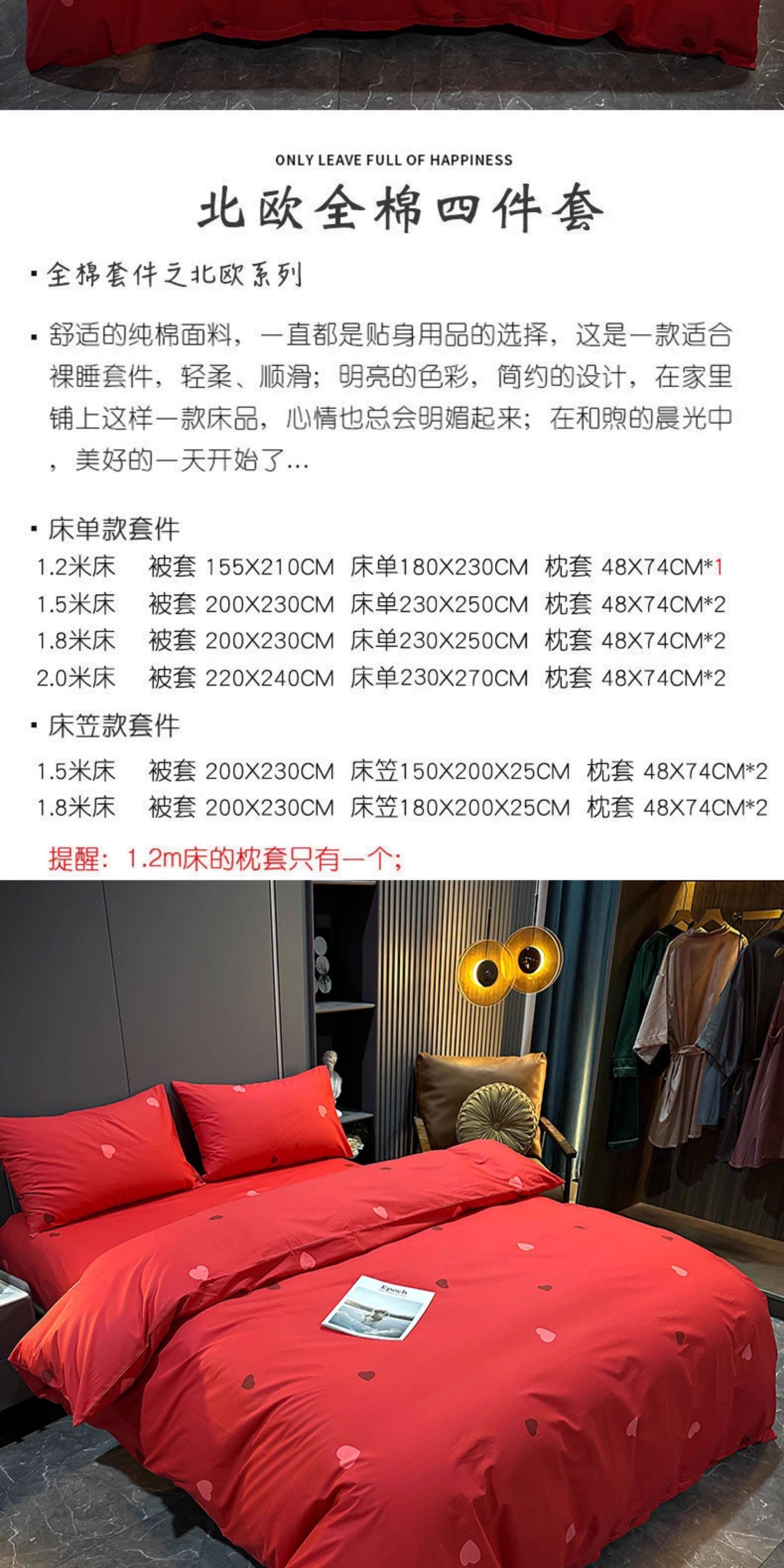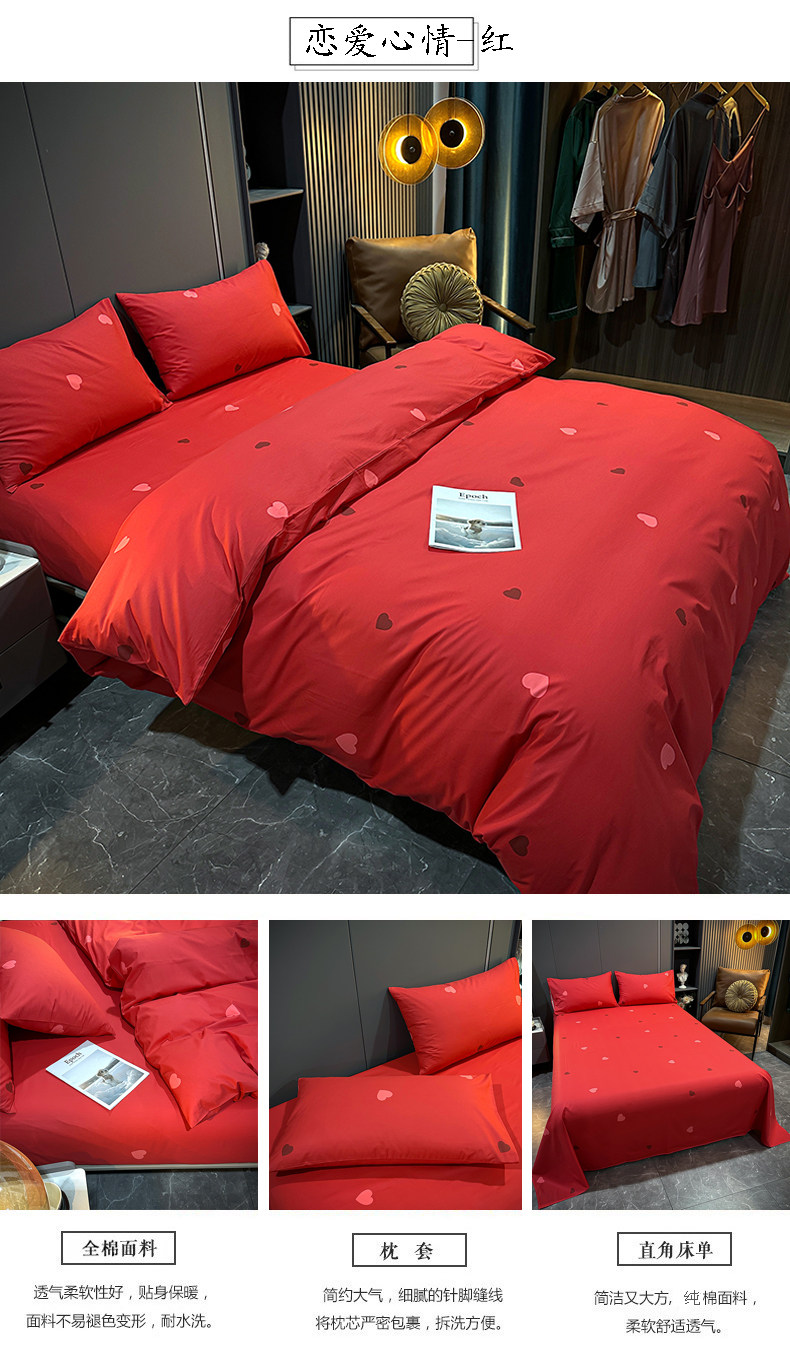 | Applicable Bed Size | 1.2m Dormitory Bed Sheet Three-Piece Set (Suitable for Quilt 150*200),1.5m Bed Sheet Four-Piece Set (Suitable for Quilt 200*230),1.8m Bed Sheet Four-Piece Set (Suitable for Quilt 200*230),2.0m Bed Sheet Four-Piece Set (Suitable for Quilt 220*240),1.5-Piece Fitted Sheet Set,1.8-Piece Fitted Sheet Set |