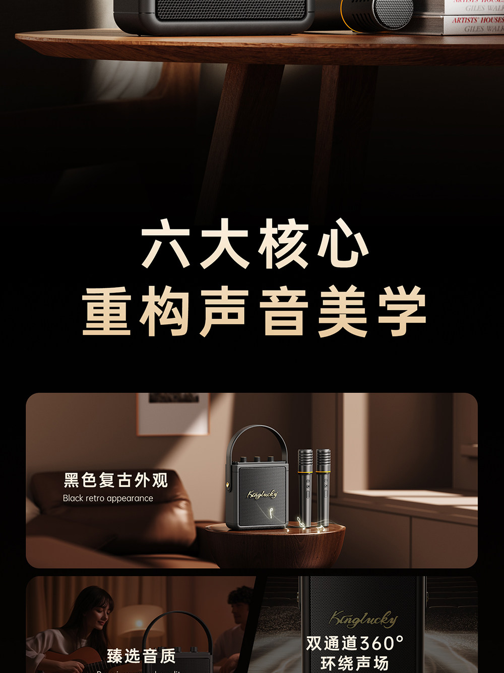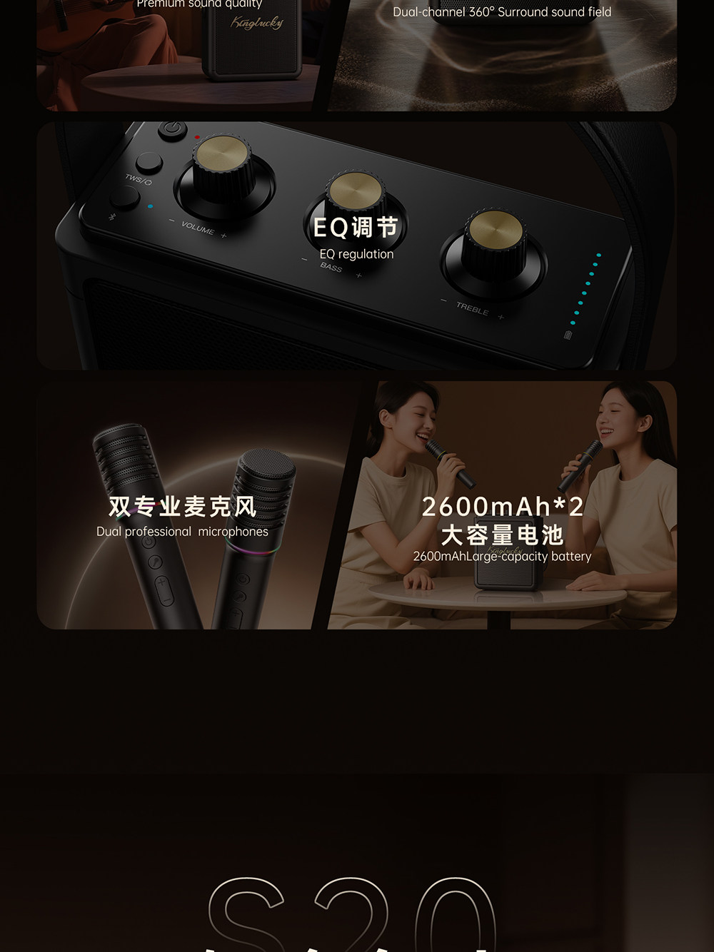 Jinyun S20K Karaoke Speaker with Integrated Microphone, Home Karaoke Wireless Bluetooth Speaker, Karaoke