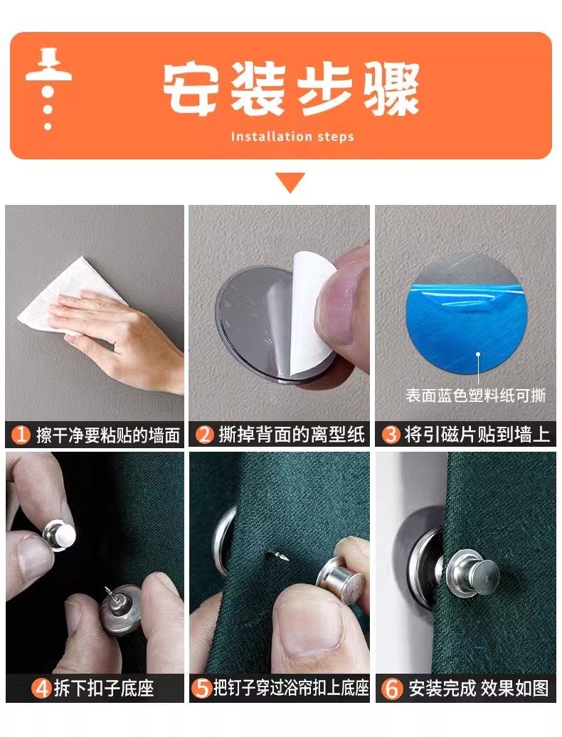 Powerful Magnetic Buckle for Bathroom Shower Curtain, Magnetic Patch, No Drilling Required, Wall-Mounted, Anti-Light Leakage Buckle