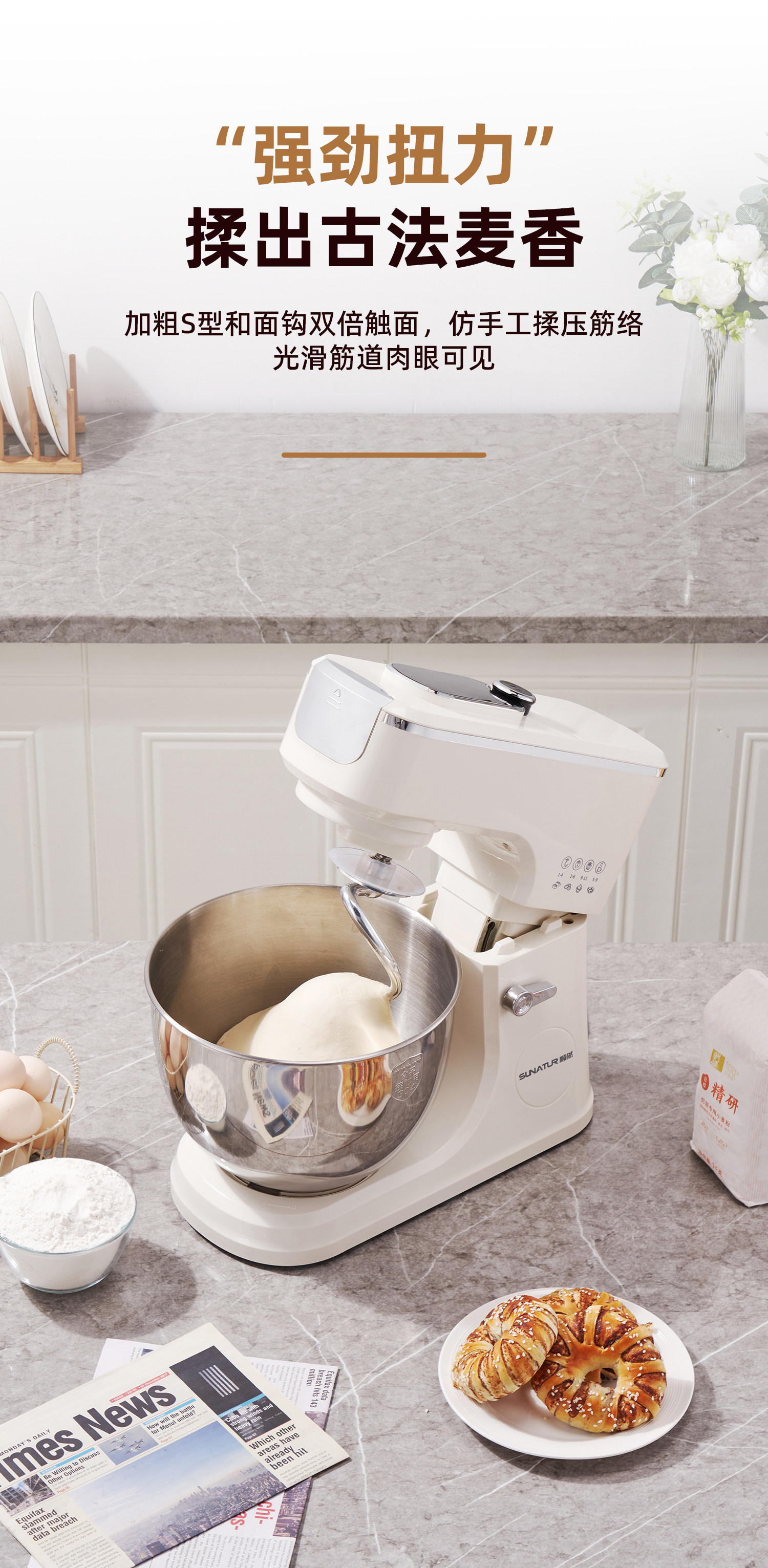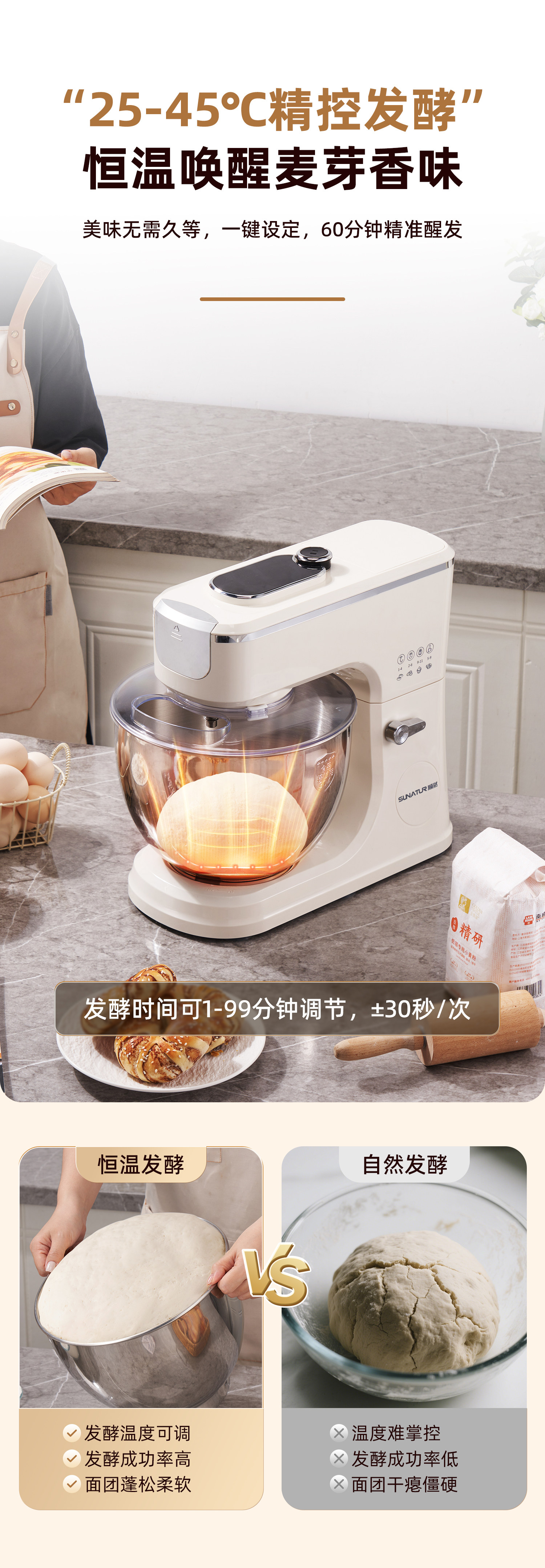 [National Subsidy 15%]Shunran 3008 Chef Machine with Fermentation Function, Automatic Home Use Small Commercial Dough Kneading and Mixing Machine